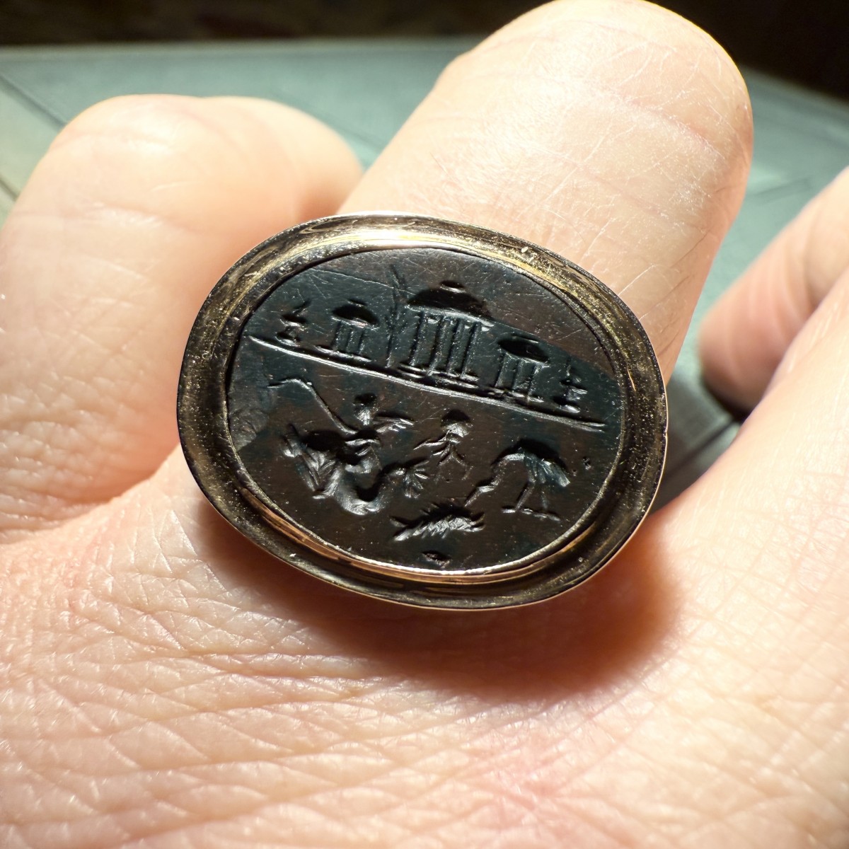 High Carat Gold Ring Set with a Roman Magical Jasper Intaglio.