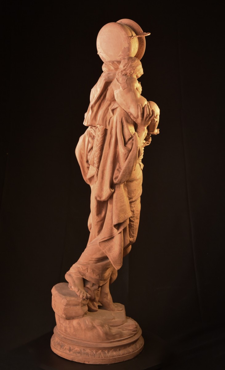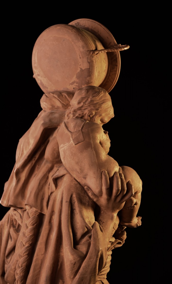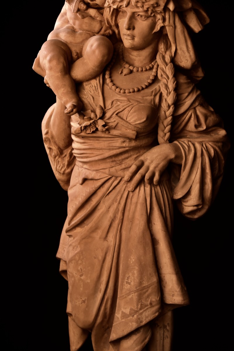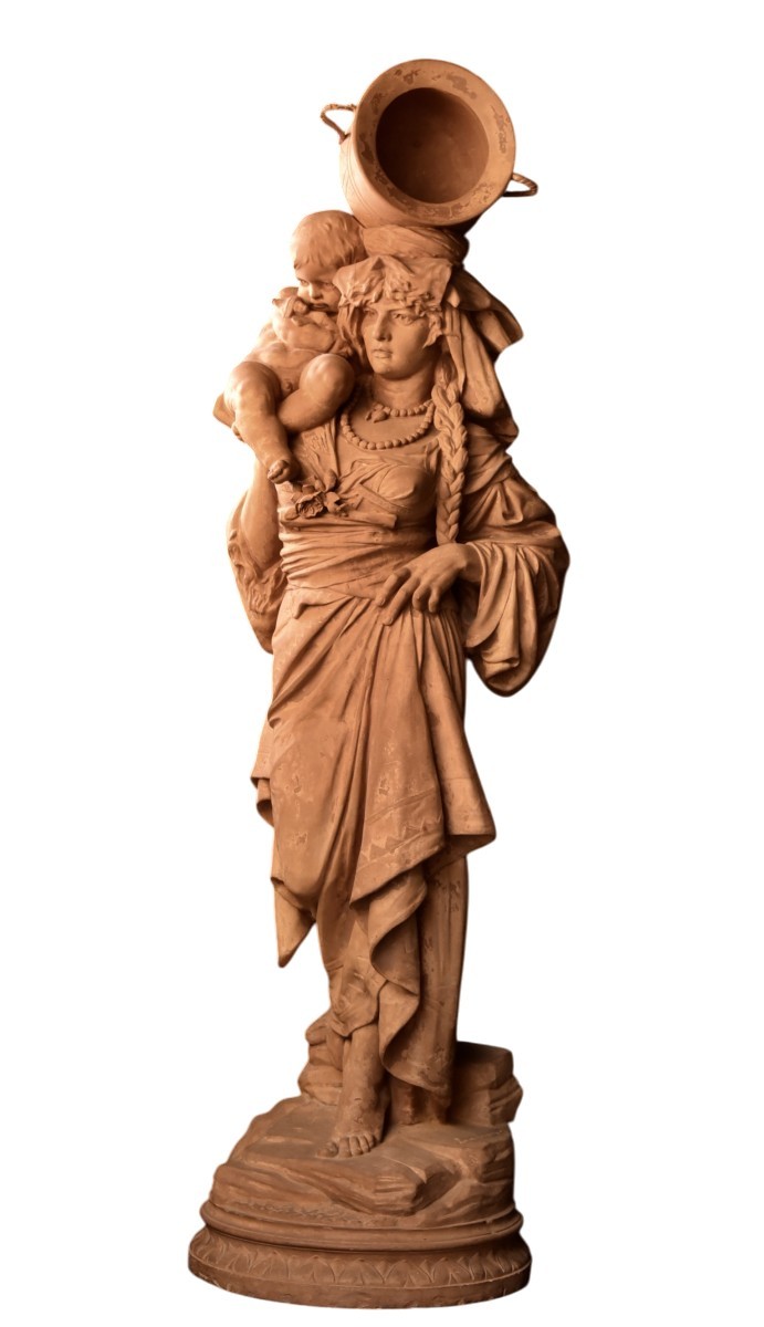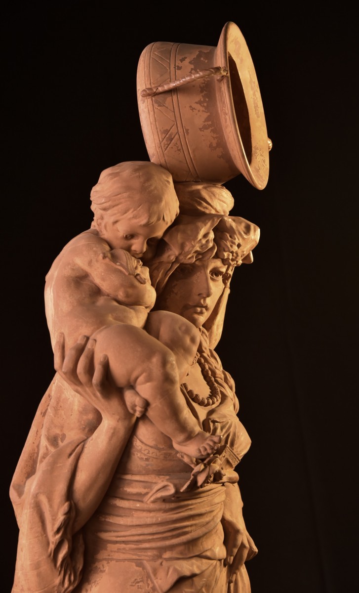 Large Terracotta Sculpture “Water Carrier with Child” -Louis Samain (1834–1901)