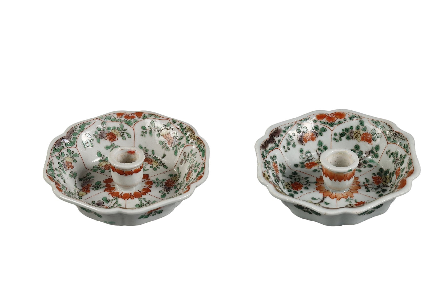 Very Rare Pair of Chinese Export Porcelain Night or Toilet Candlesticks, Kangxi Period (1662–1722)
