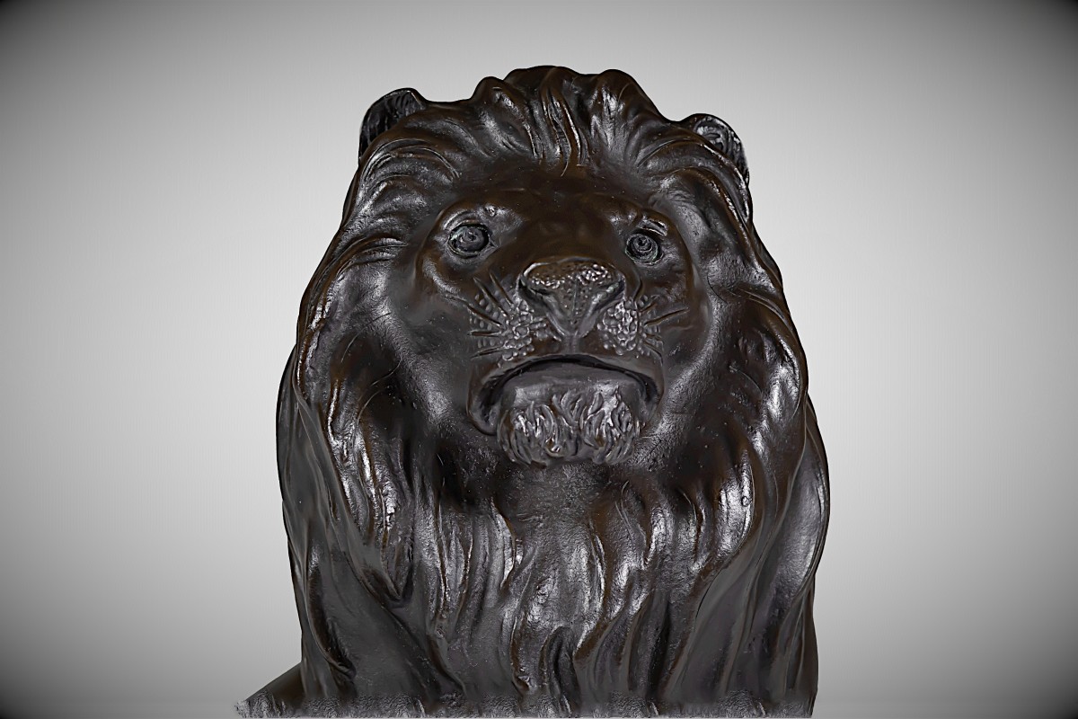 An imposing yet elegantly balanced sculpture, this bronze lion exemplifies the finest collaboration between artist and foundry in late 19th-century Japan. Its presence is at once noble and serene, offering a rare and distinguished addition to any collection of Japanese art or master bronze animalier sculpture.