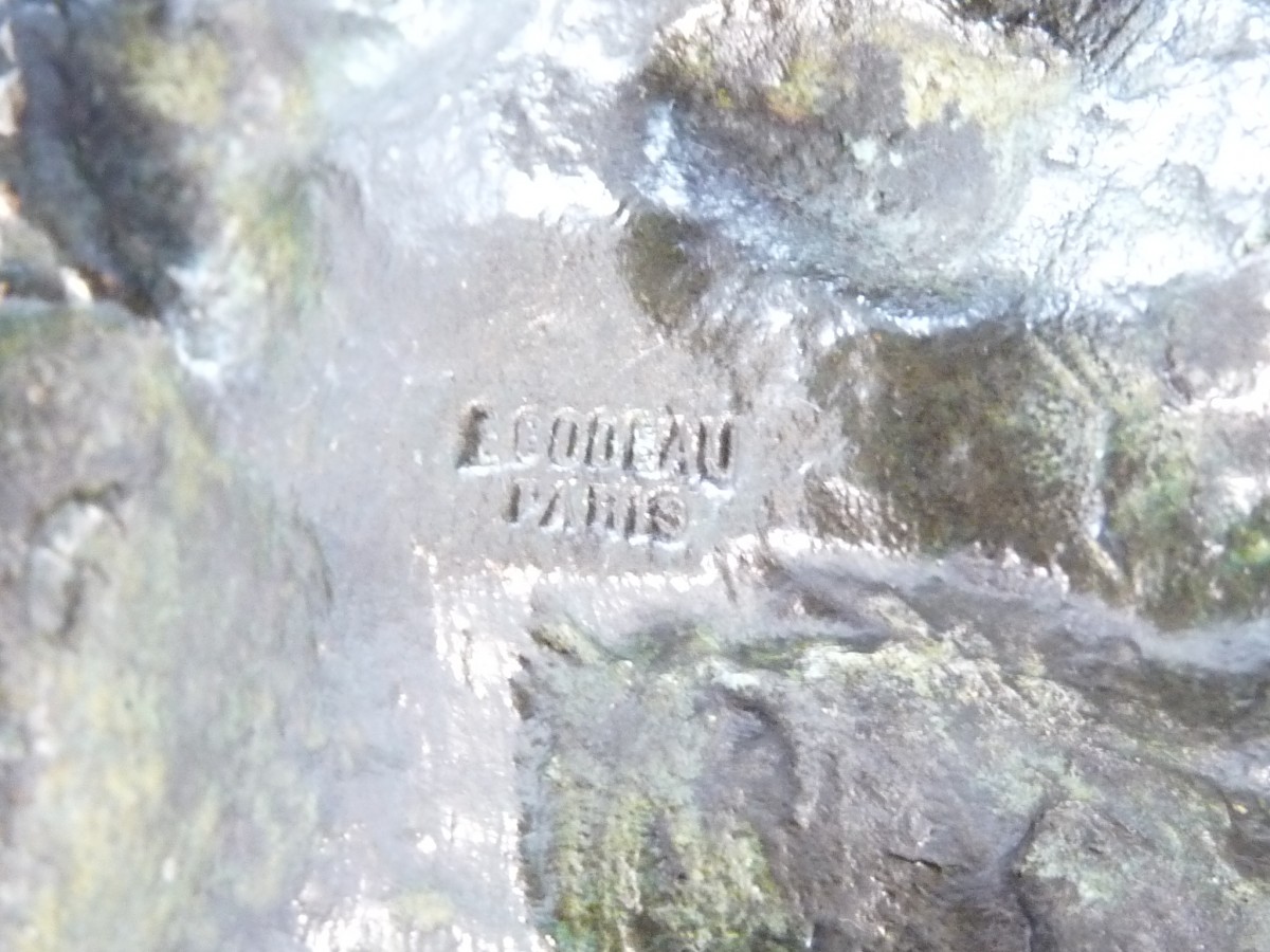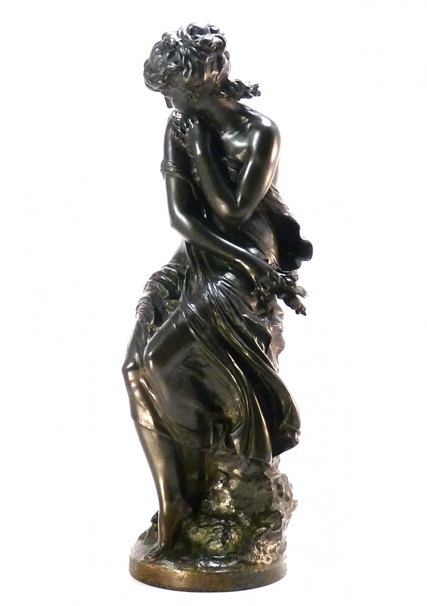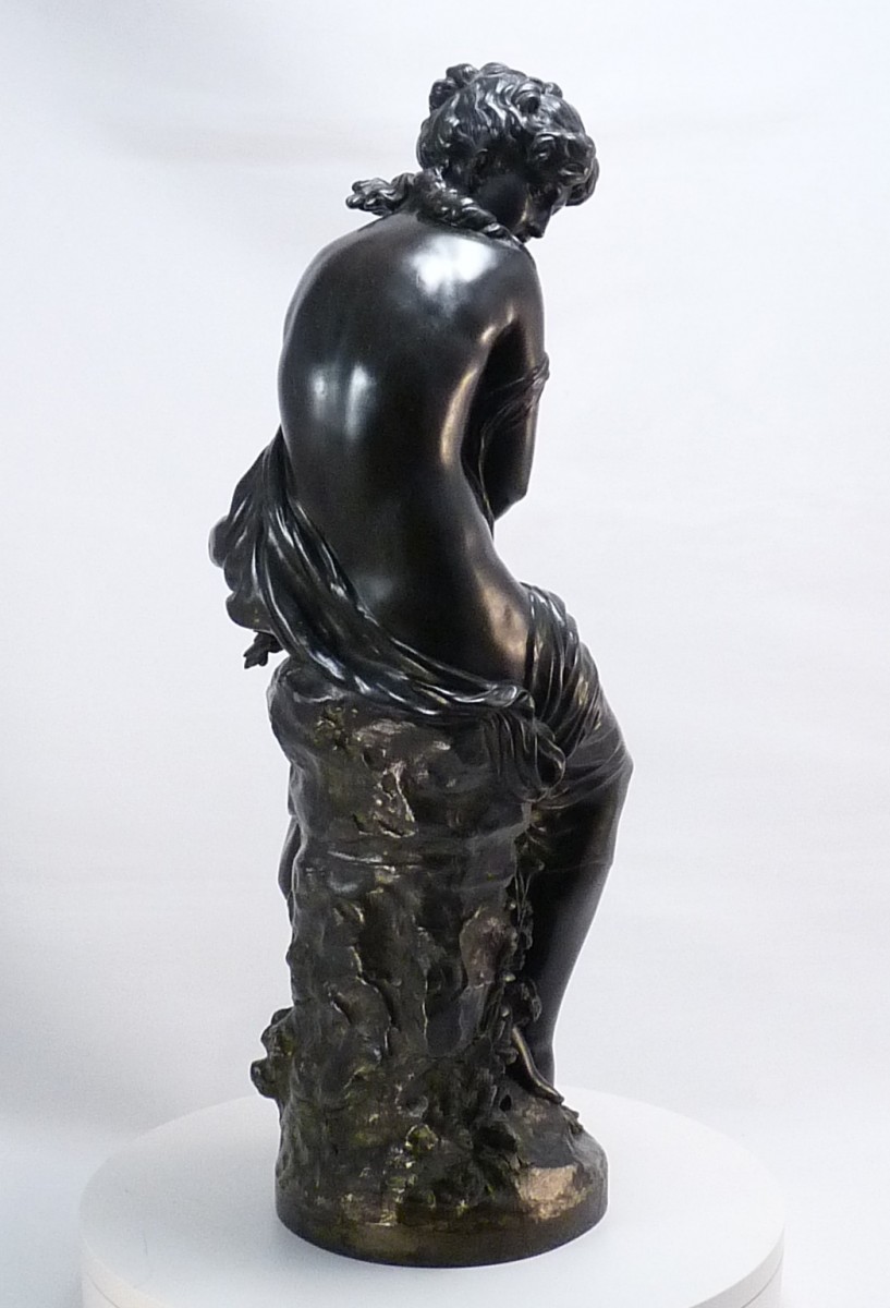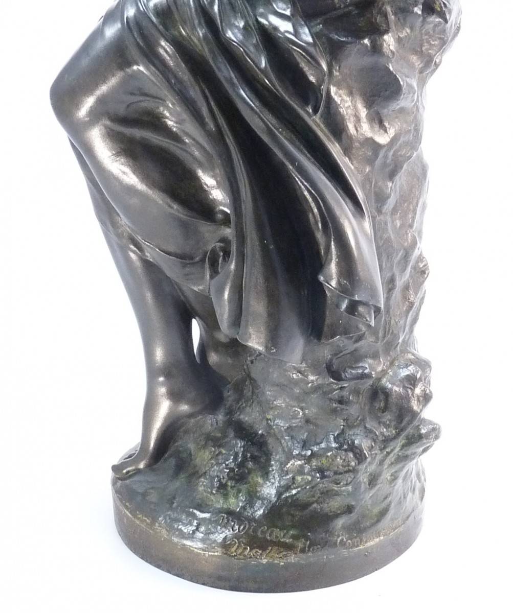 "la frileuse" by Mathurin Moreau, Bronze with dark green patina. Foundry mark E. Godeau