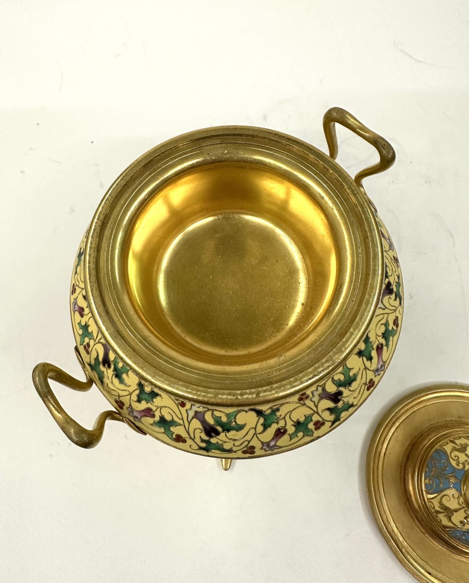 Lidded Cup in champlevé enamels, with gilt bronze scrollwork mounts. By Maison Ferdinand Barbedienne and Constant Sévin (1821–1888)