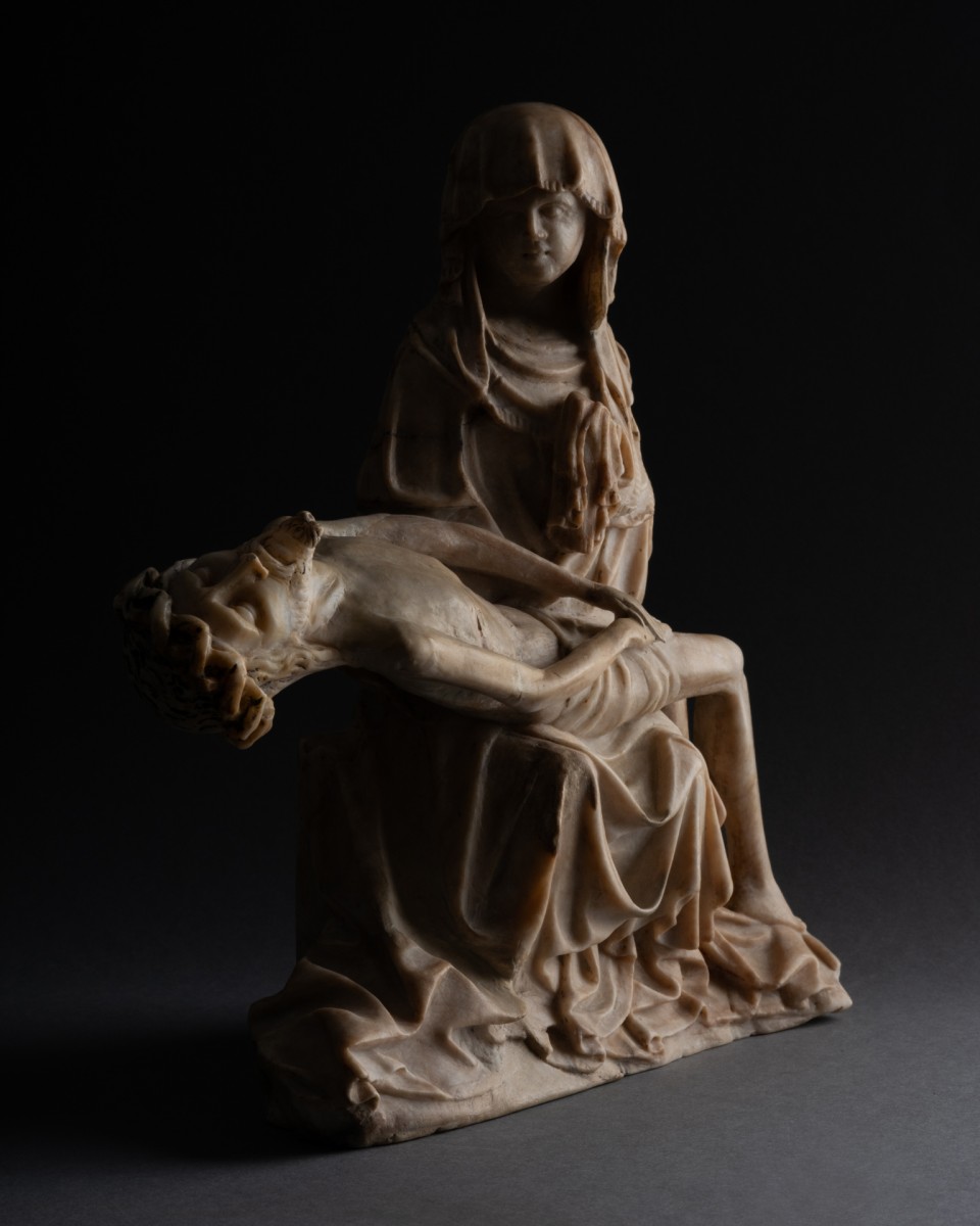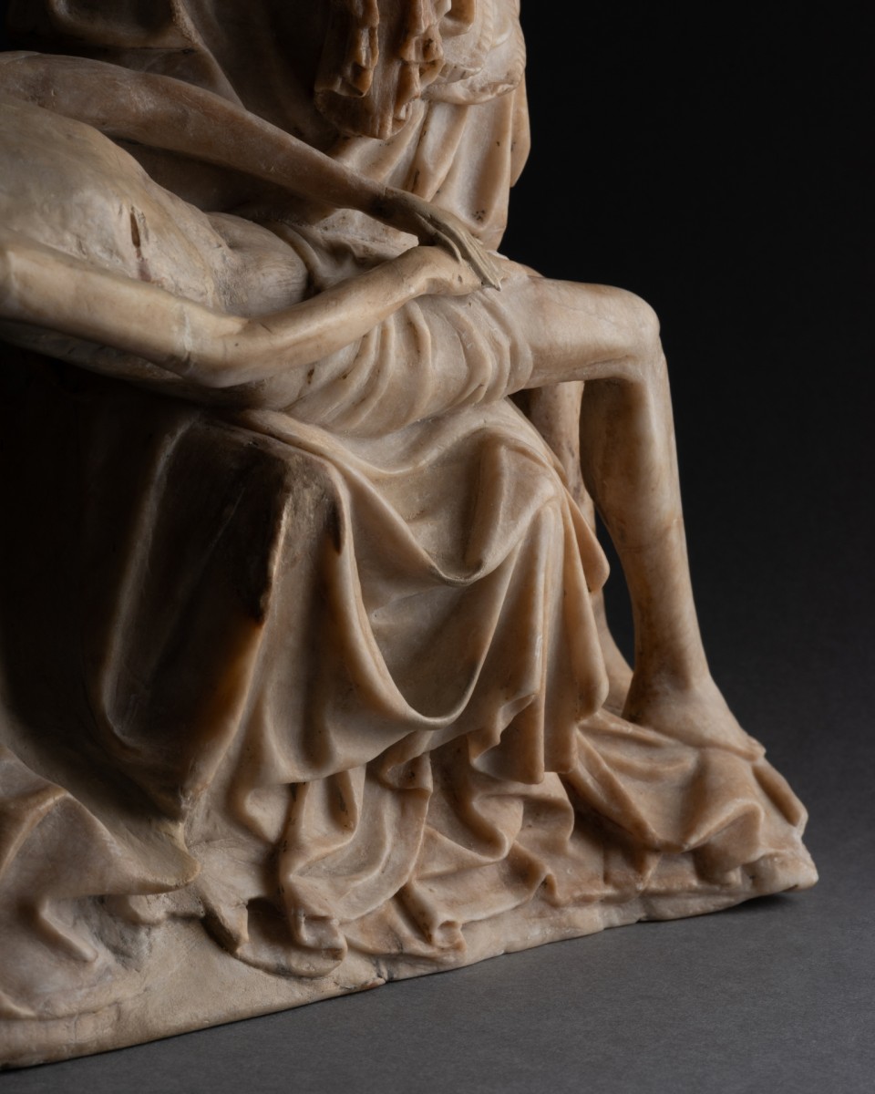This Pietà thus bears witness both to the profound spirituality of its era and to the technical excellence of a workshop at the height of its art. With its sober beauty, balanced composition, and noble materials, it embodies a pivotal moment in the history of religious sculpture in Europe at the end of the Middle Ages.