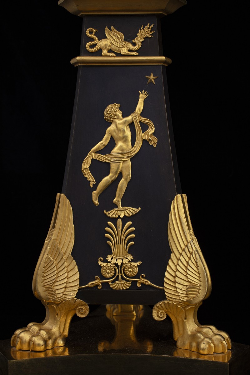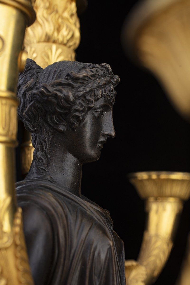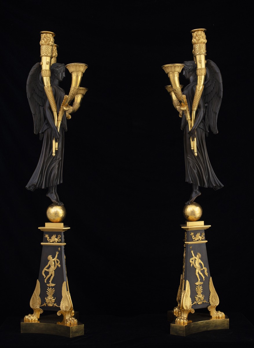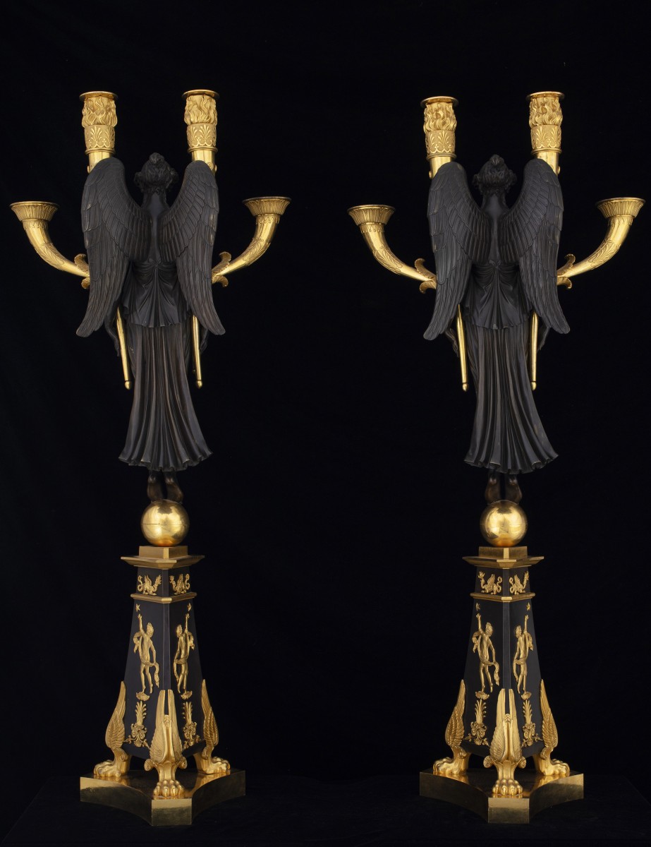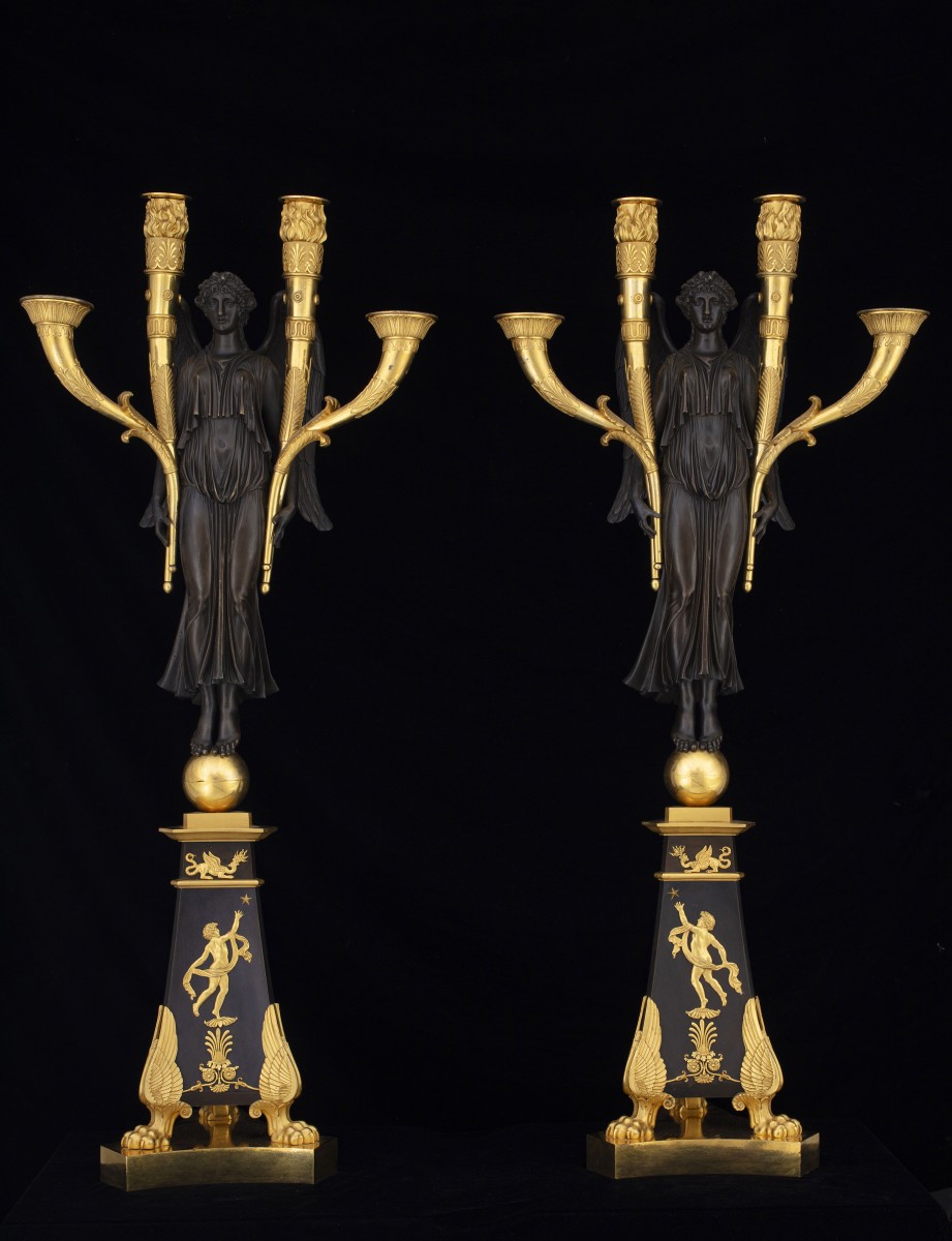 A similar pair is in the Napoleonic Museum in Rome. A similar pair is also published on page 66 of "L'Heure, Le Feu, La Lumiére". Les Bronzes du Mobilier National 18800-1870. Editions FATON