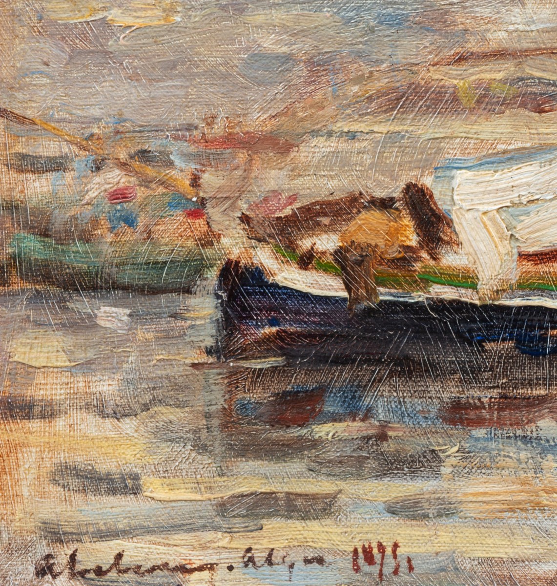 Our painting: This is one of Albert Lebourg's earliest and most sought-after works. He was in Algiers in 1875 and was already giving advice at the school of fine arts, even though he was only 27 years old. Absent from the capital and without connections to the Impressionists who participated in the first salons of this nascent movement, Lebourg was a true visionary at the time, naturally adopting a modernist touch. The material is applied in broad strokes that foreshadow Post-Impressionism.