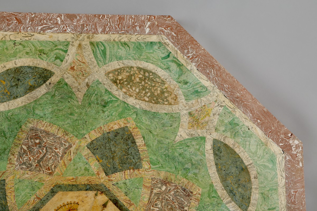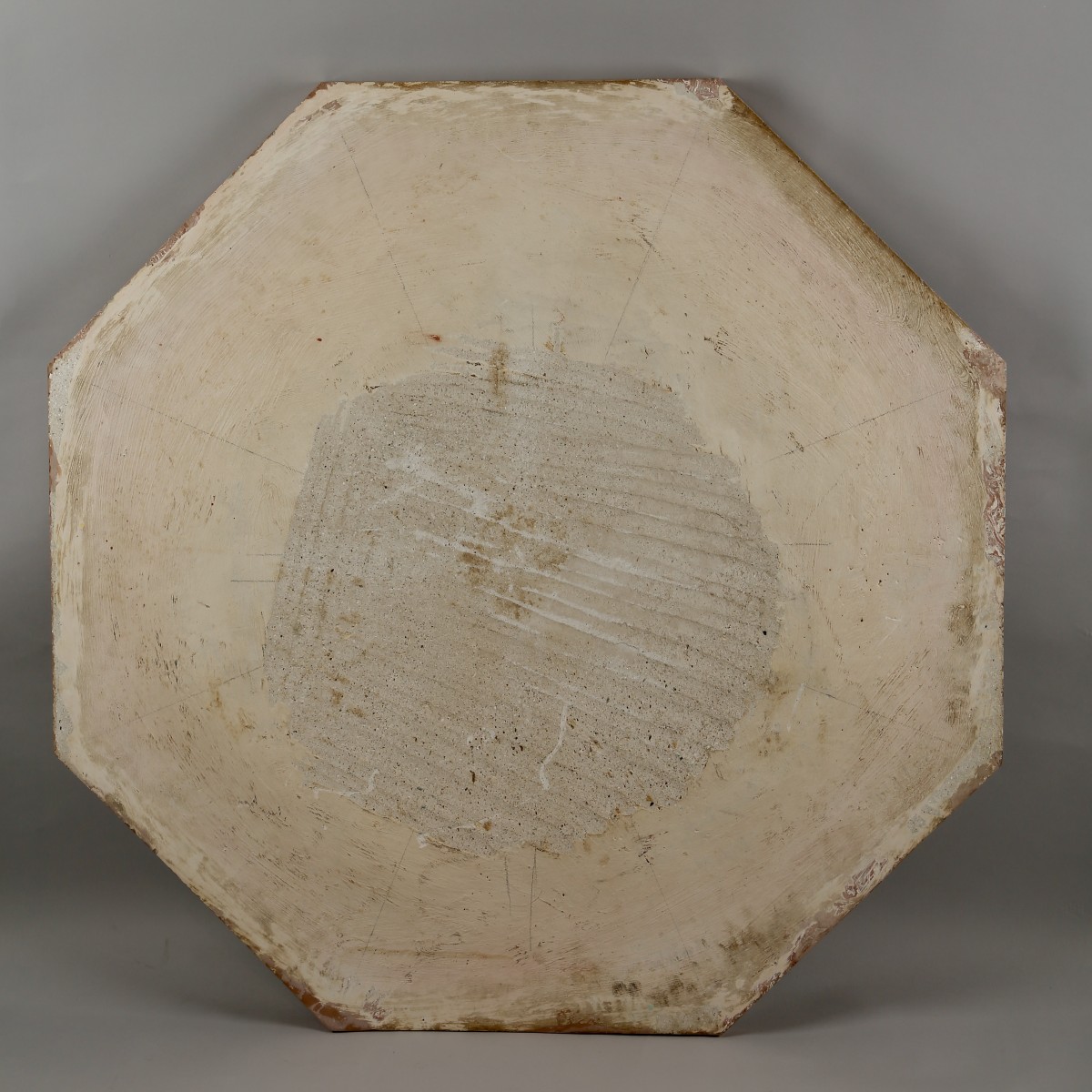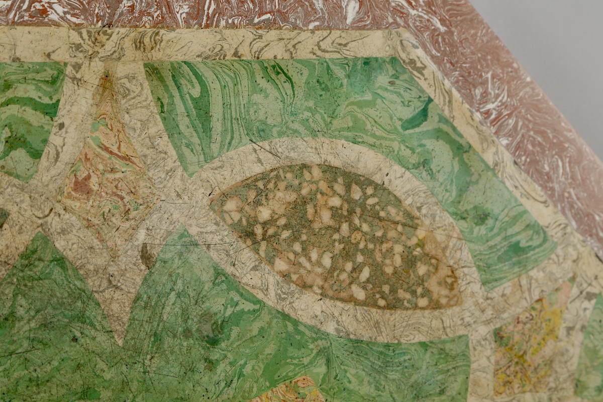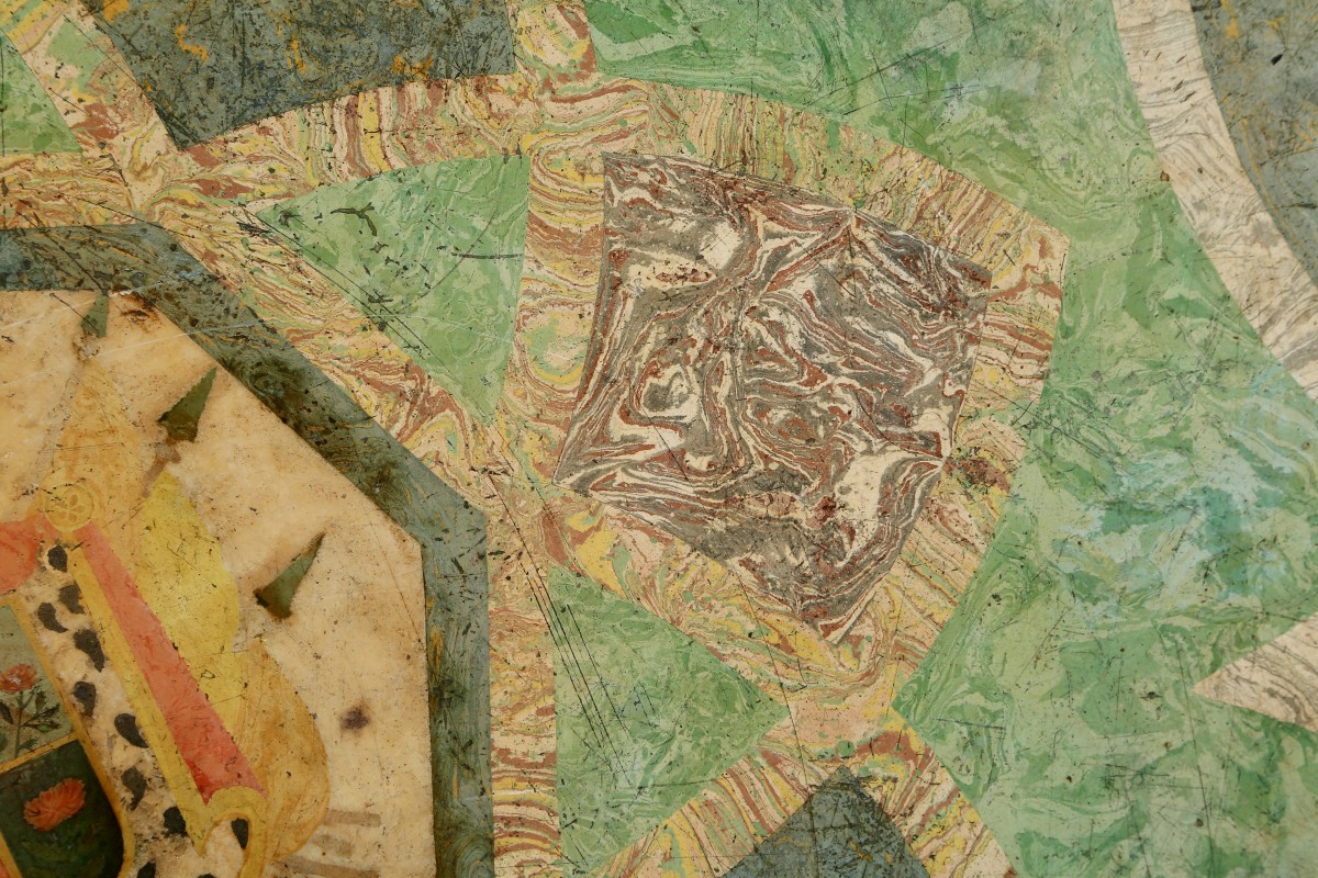 It could be attributed to the Tocco family of Kefalonia. Indeed, the coat of arms discovered on the edge of a well in the medieval fortress of Arta presents a coat of arms which has a sinister illustration of a doubly crowned two-headed eagle (relation to Byzantium). Like ours, it presents itself with its wings not spread and its beak closed, a crown overhanging each head. However, unlike ours, it is gold. Other coats of arms, those of Enzo of Sardinia could, by similarity, also correspond to ours.