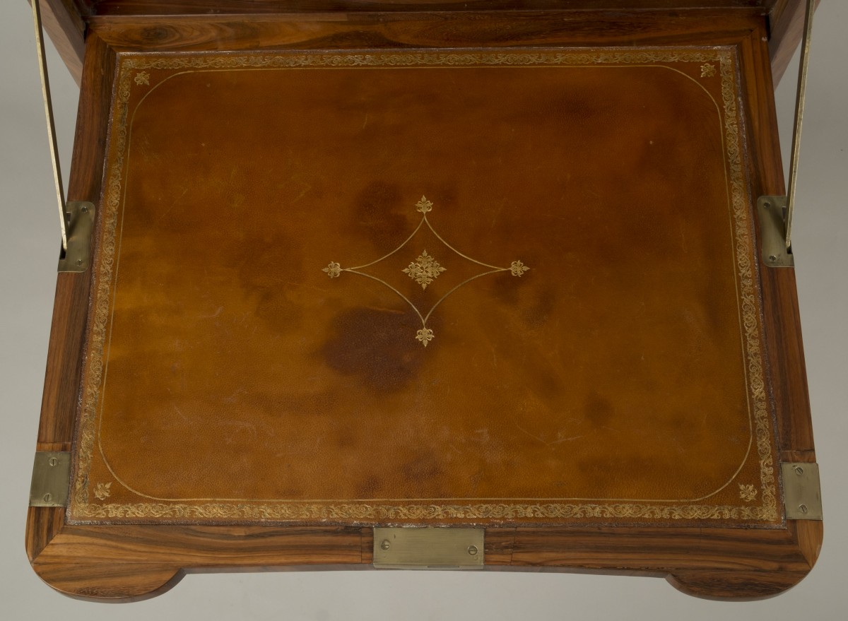 It is inlaid with rosewood in a herringbone pattern, cartouches, and framed in amaranth.