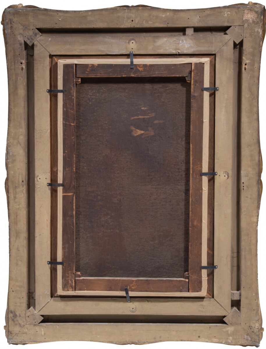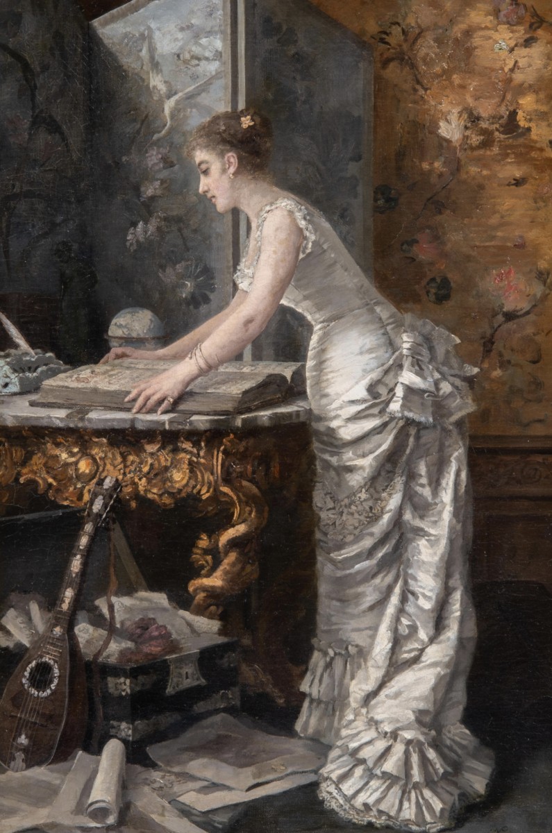 Oil on canvas painting "Young Man Reading in an Interior", signed lower right Louis Charles VERWEE (1832-1882). Canvas dimensions: HxW 80x50 cm. With frame HxW 114x88 cm.