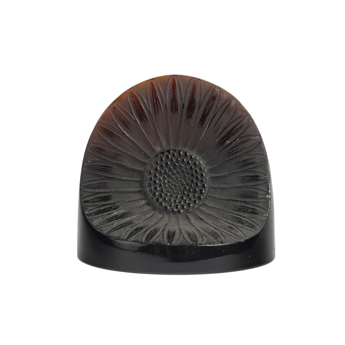 Paperweight "Double Marguerite" made in amber red glass by René Lalique in 1919.