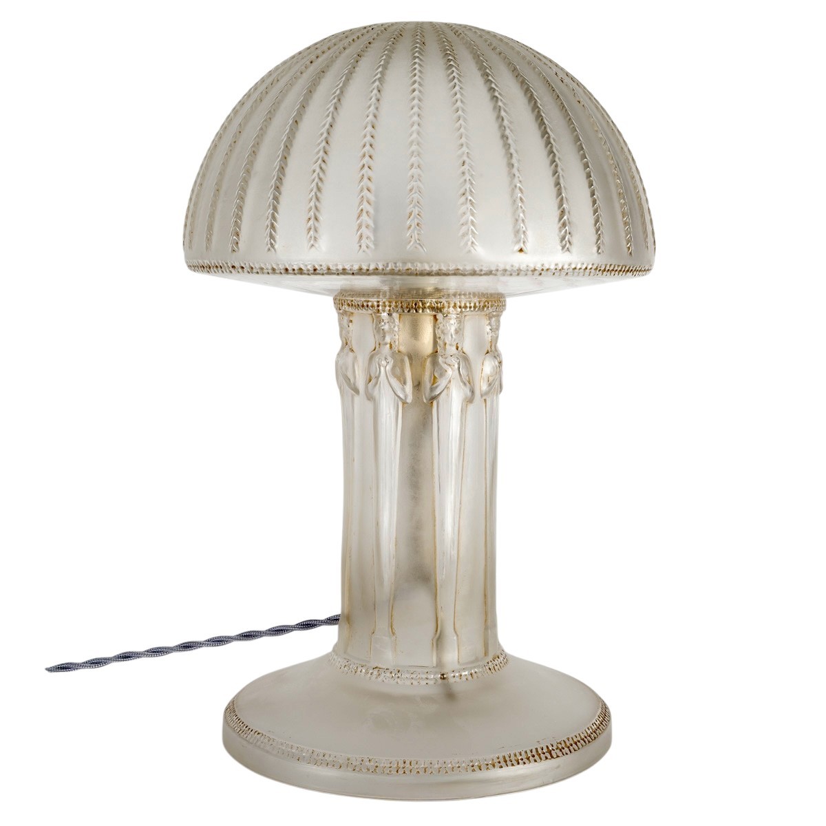 Lamp "Caryatids" made in glass with sepia patina by René Lalique in 1920.