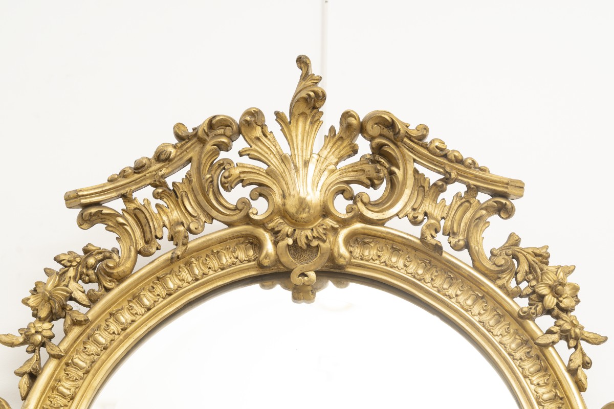 This type of mirror, emblematic of the Napoleon III style, draws directly from the Louis XV repertoire, reinterpreted with a sense of dramatic ornamentation and virtuoso execution. It fits beautifully into both a classical interior and a contemporary setting seeking a decorative statement piece.