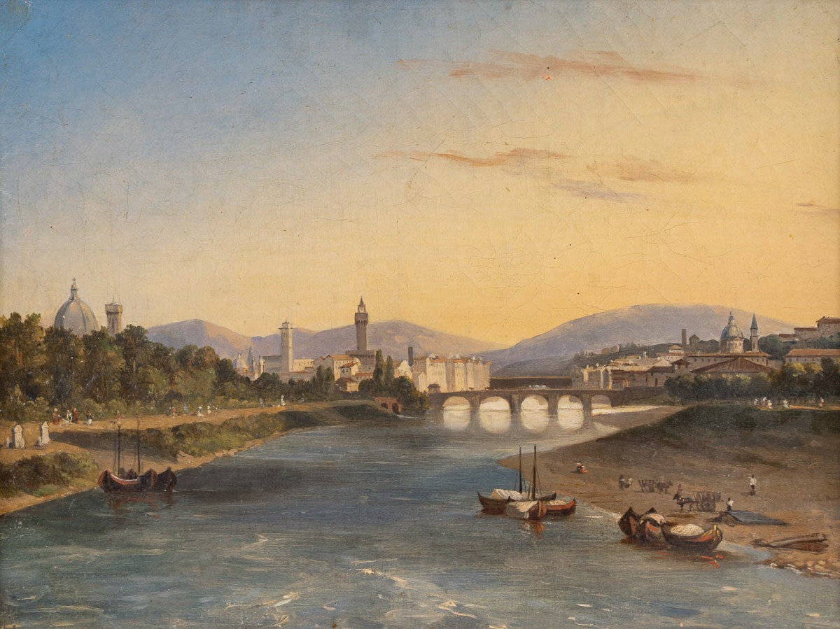 Paintings depicting Florence and its iconic landscapes remain rare on the art market, as Italian collectors cherish and closely guard them. For centuries, Tuscany—and Florence in particular—has been a premier destination for European artists, drawn by its Renaissance heritage and breathtaking scenery. Charles-Édouard Hugot was no exception to this tradition.