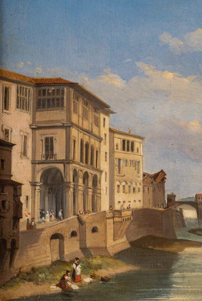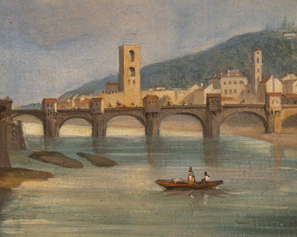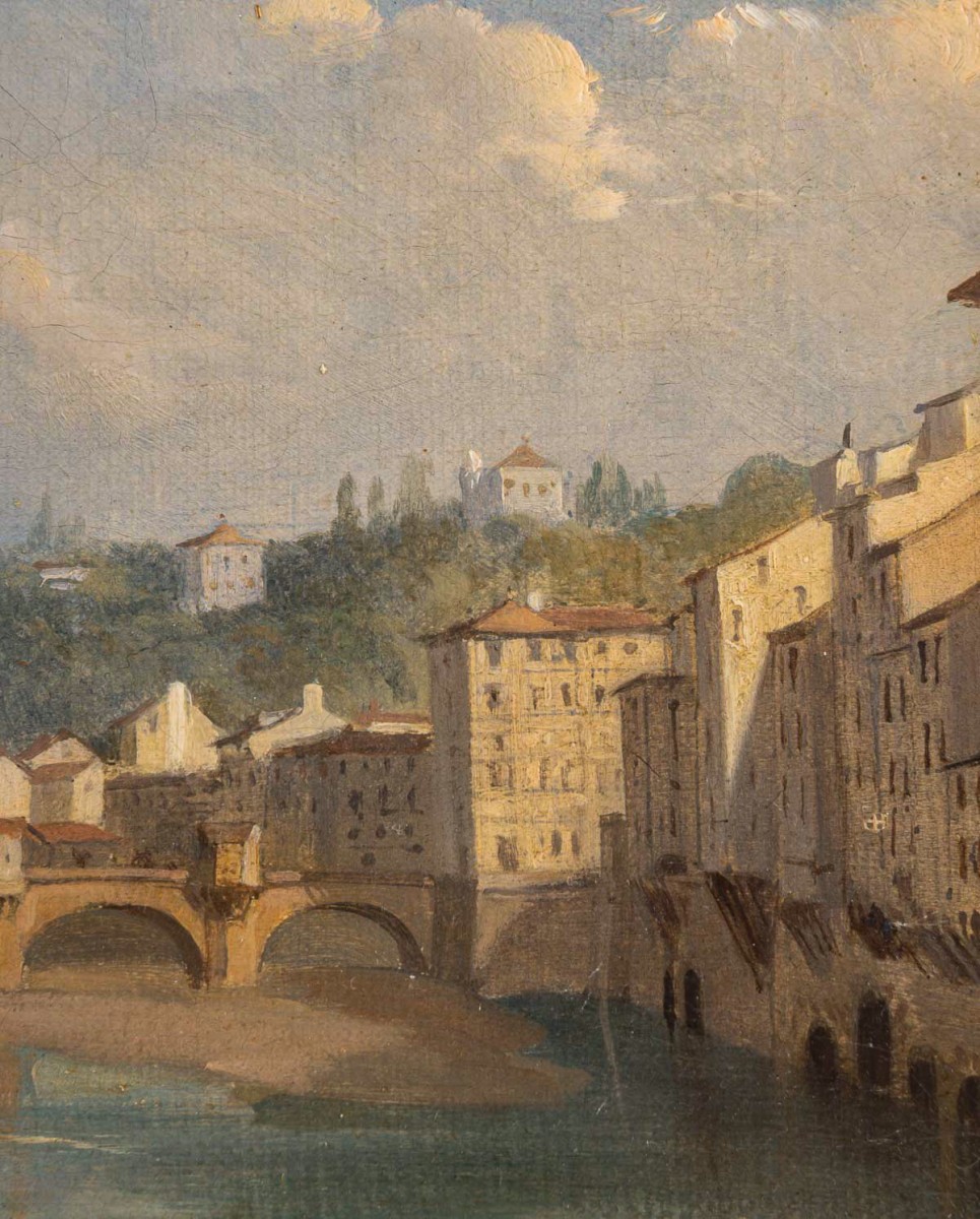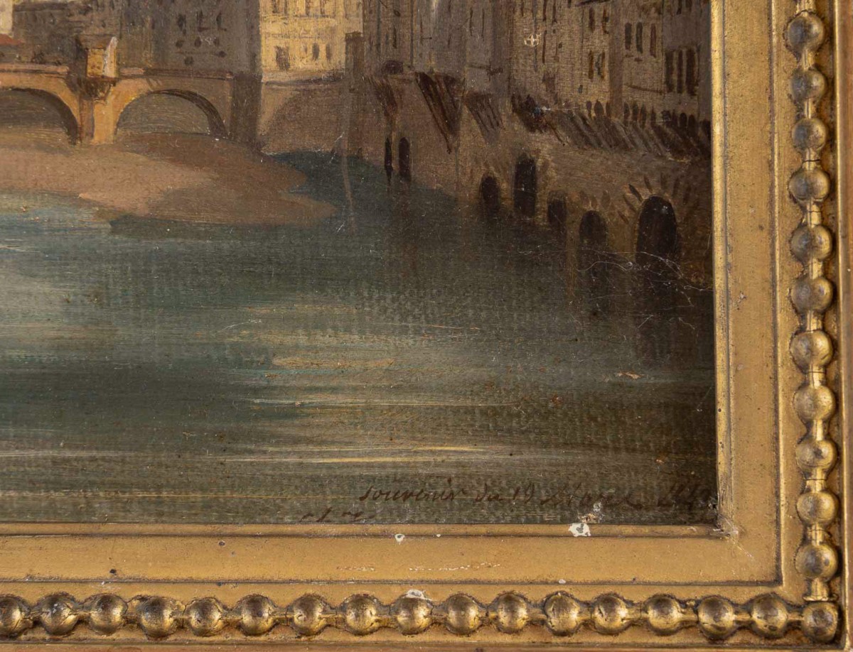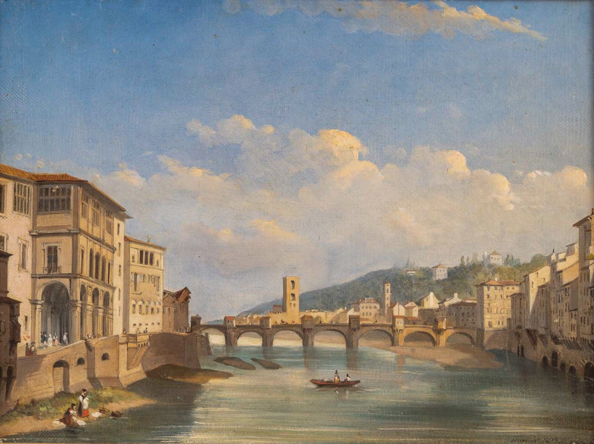 While his work is often linked to landscapes of the Oise, Aisne, and Somme regions, as well as historical themes like The Reformist Banquet of Amiens and The Invasion of 1814, his artistic journey extended beyond France. In 1843, he traveled to Florence, where he created a series of canvases dedicated to the Arno’s riverbanks and the city’s landmark monuments, including the Ponte Vecchio and the dome of Santa Maria del Fiore. These signed and dated works reveal his acute sensitivity to Tuscan light and Florentine life, marking a pivotal journey in his artistic development. Though rarely documented in traditional sources, this Italian sojourn aligns with the formative travels undertaken by French artists of his time, inspired by the legacy of the Villa Medici.