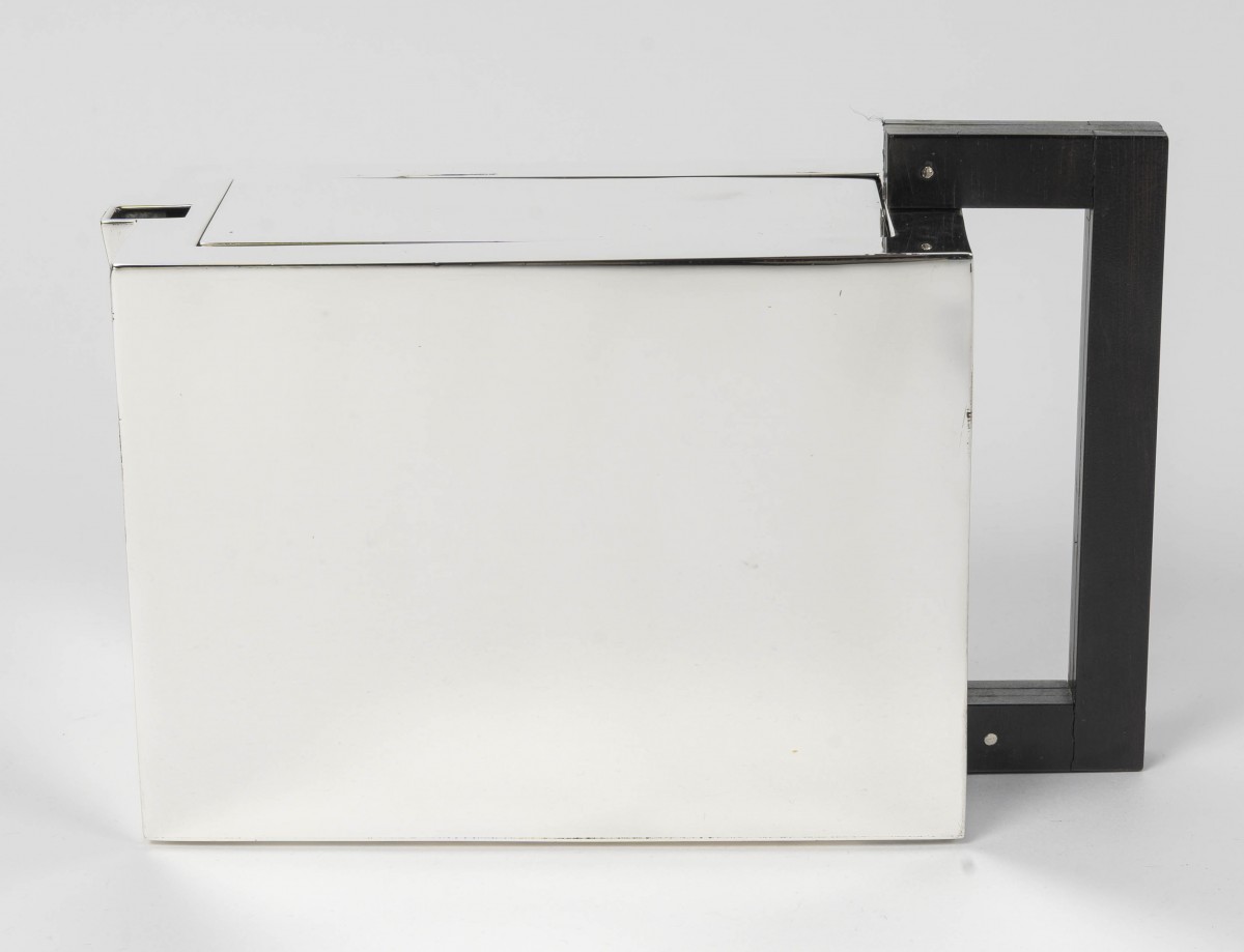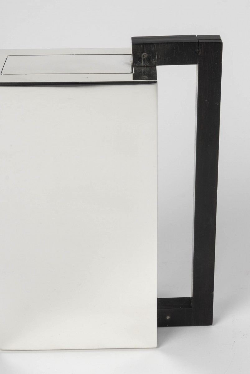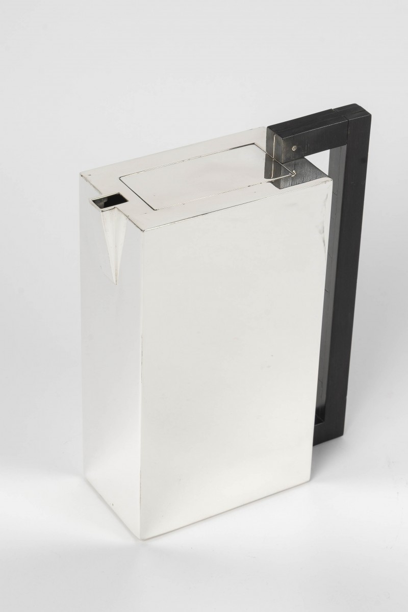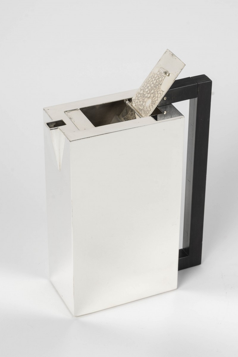 Architecturally designed silhouette, dominant vertical line, and rectangular lid.