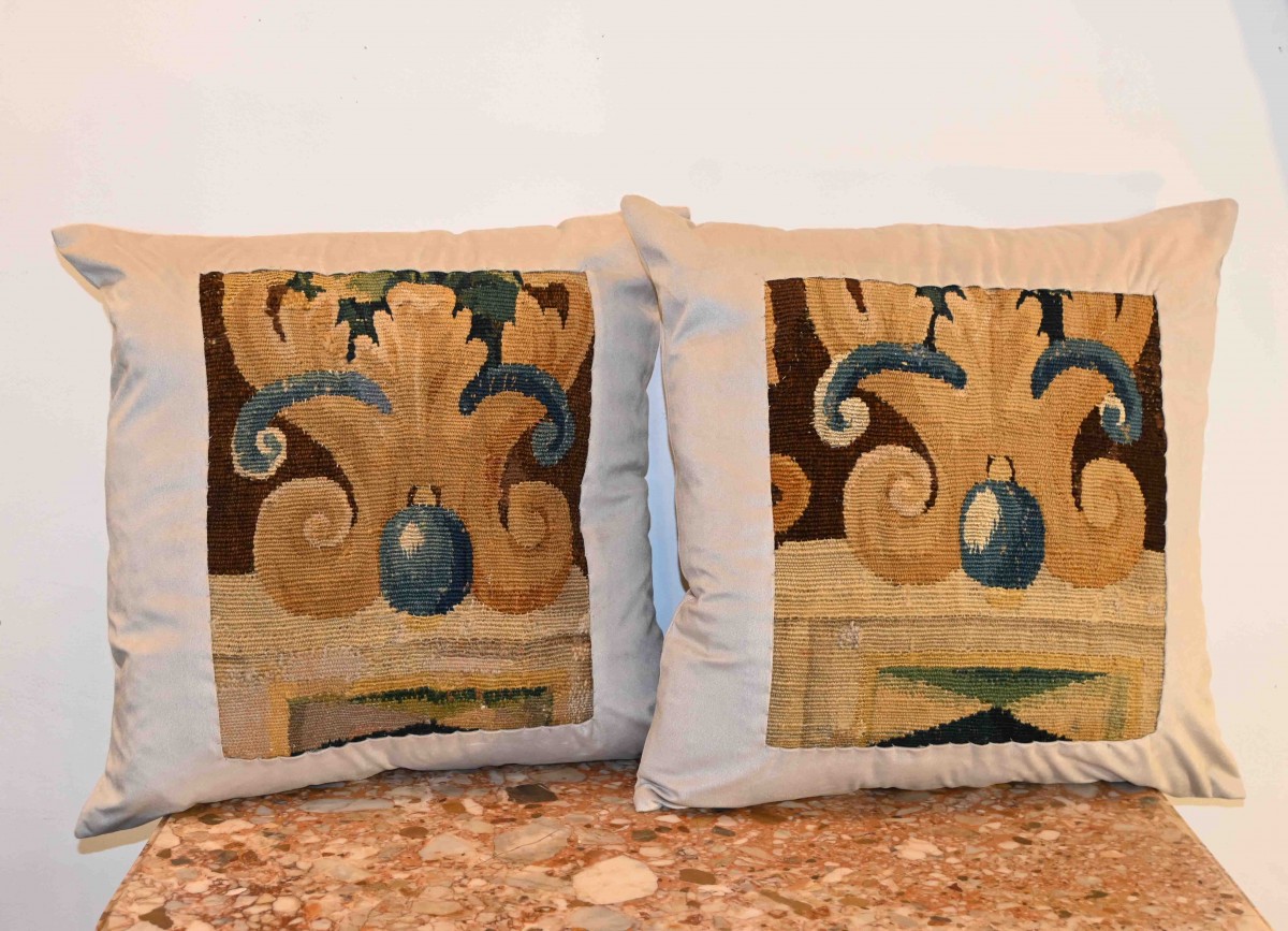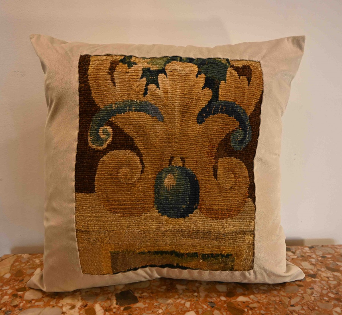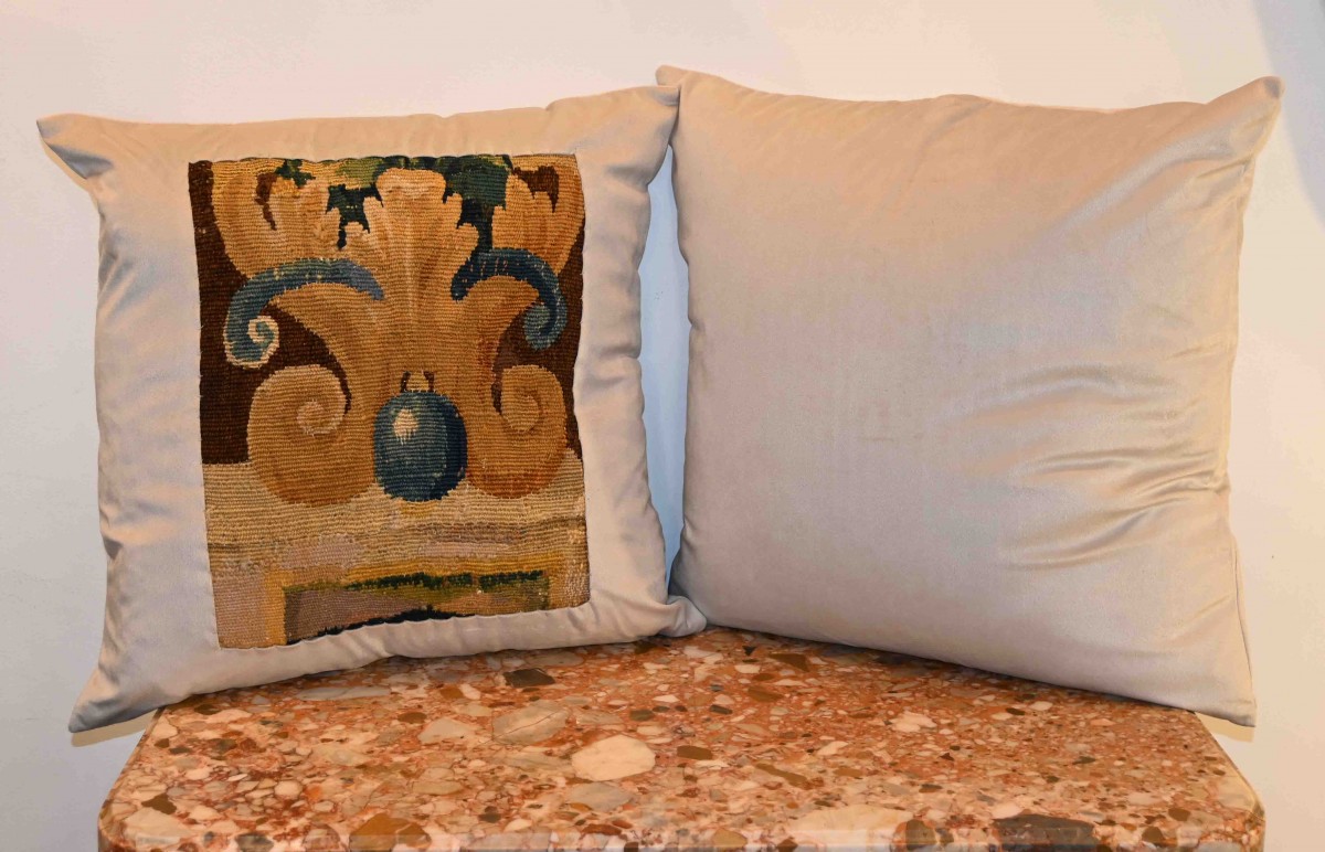 Our workshop offers a sublime collection of cushions entirely handmade in French tapestries and fabrics from the 16th to the 20th centuries, as well as 19th-century kilims. Our range of handmade cushions in French tapestries and fabrics, including velvet, will charm you with their high-quality finishes.