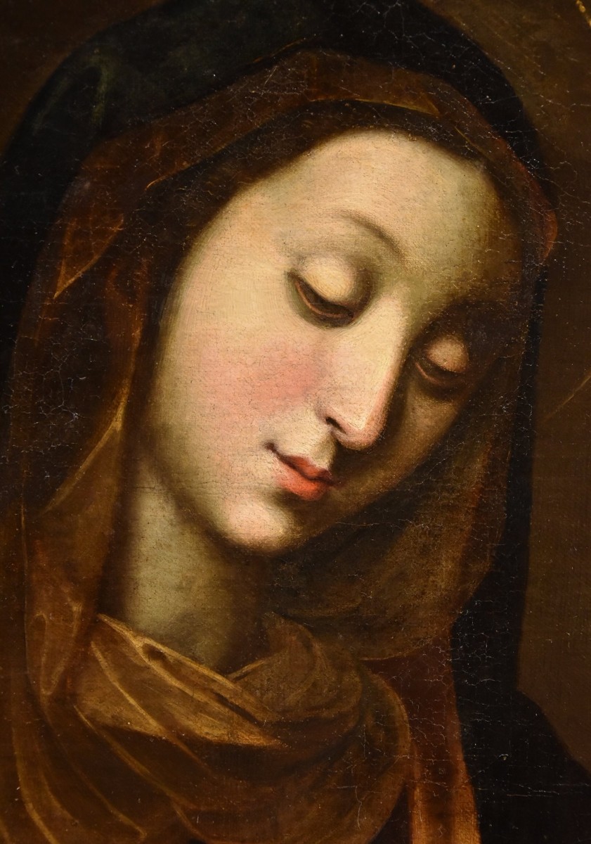 Famous for his skills as a portraitist, he was also the creator of timeless devotional images in the style of Raphael, masterfully interpreting post-Tridentine ideals, as can be seen in the refined rendering of the facial features in our canvas, still close to the Mannerist style of Florentine origin.