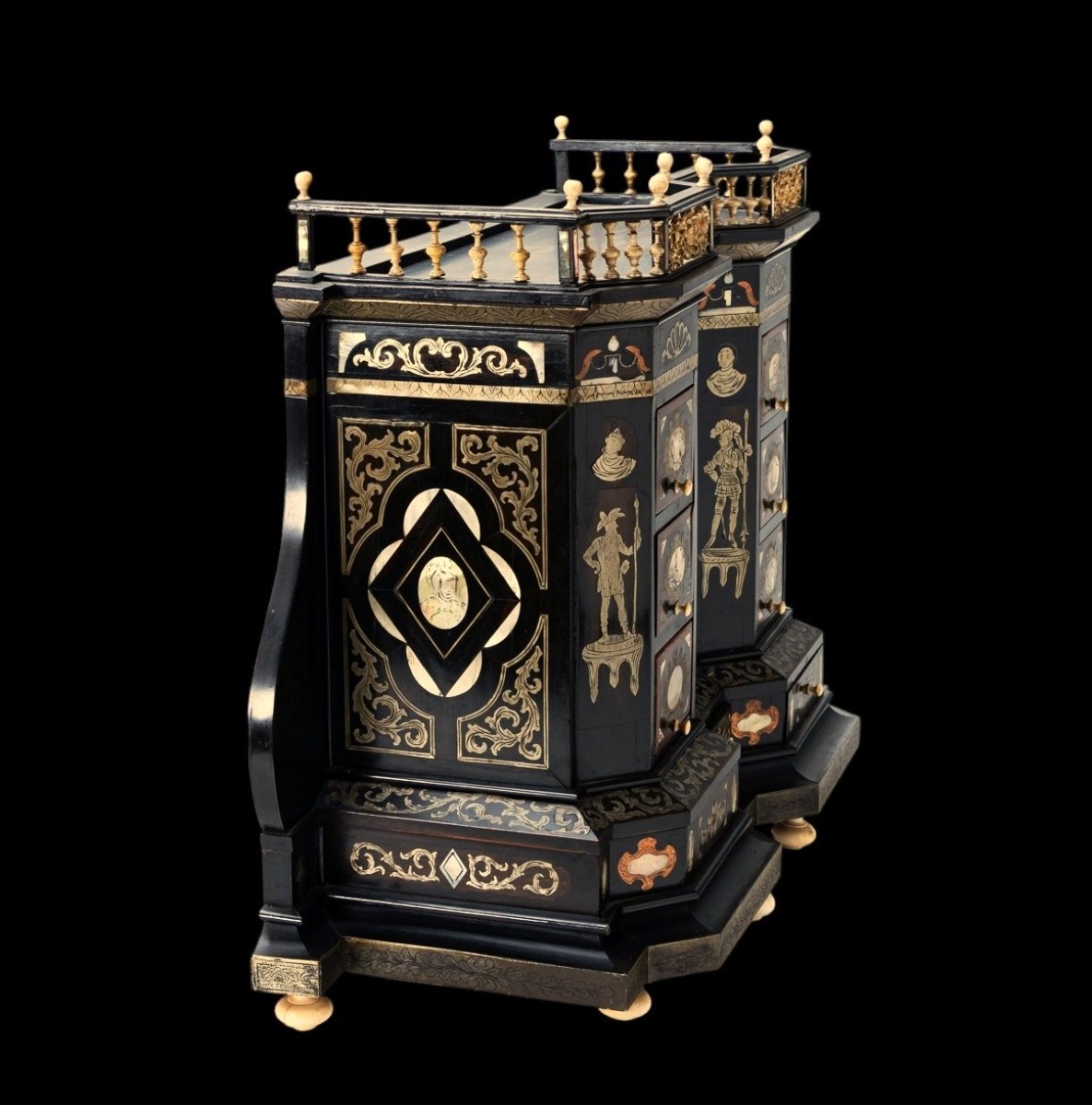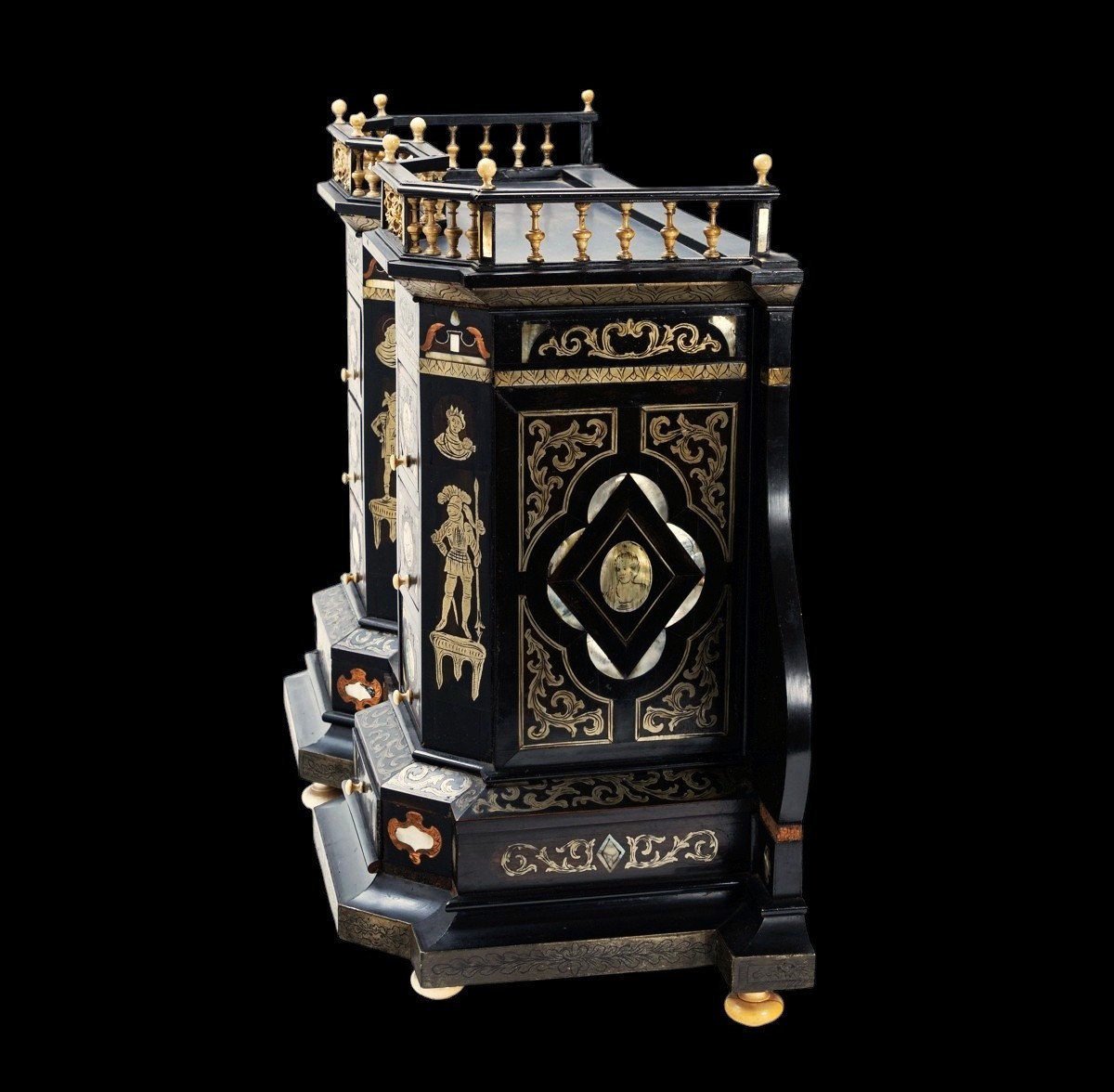 Ivory, wood, ebony and mother of pearl.