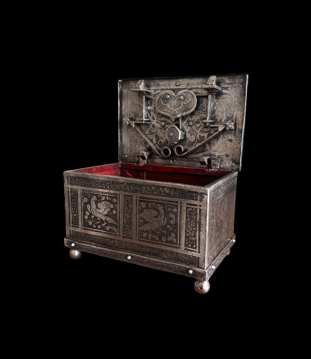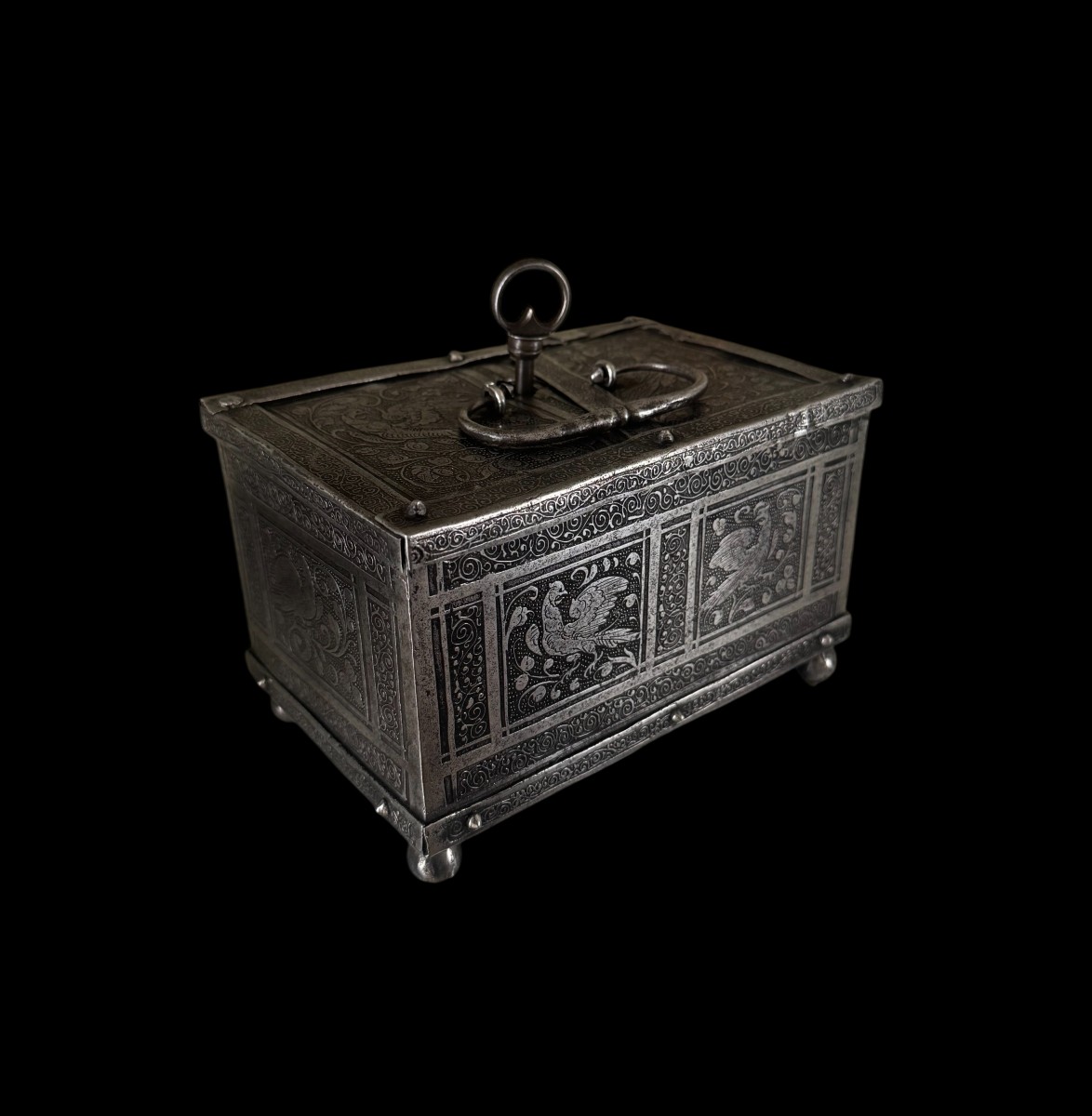 Etched iron casket Nuremberg, Ca.1600 Height: 17,5 x 11,5cm.