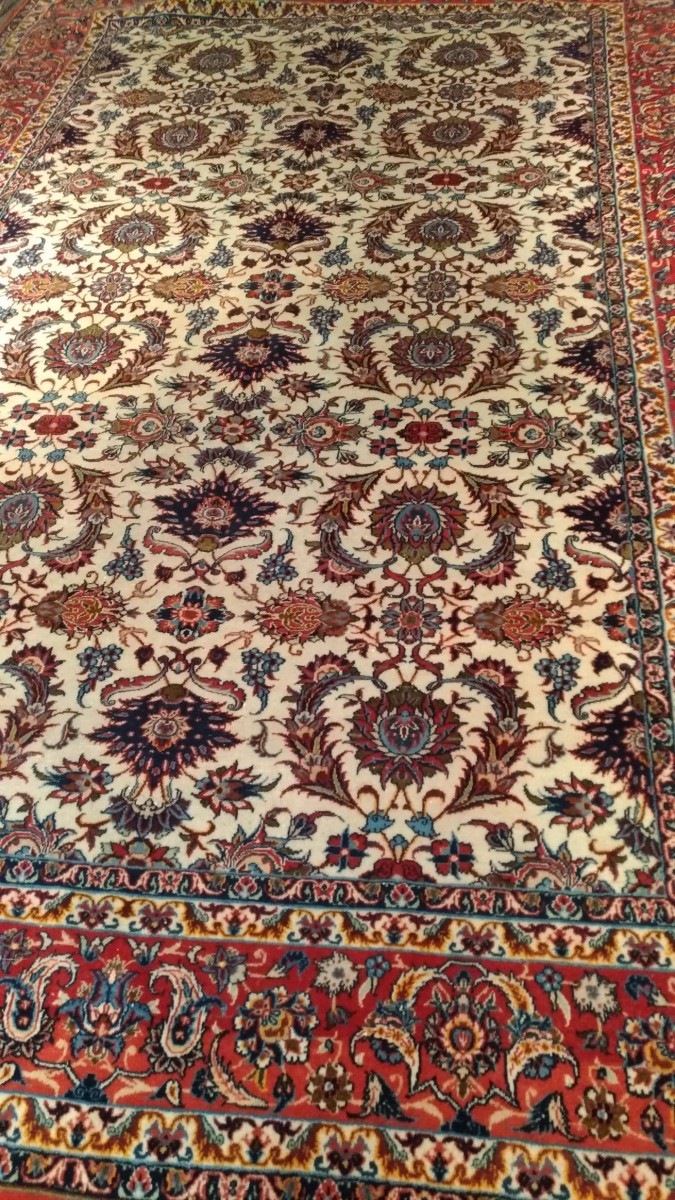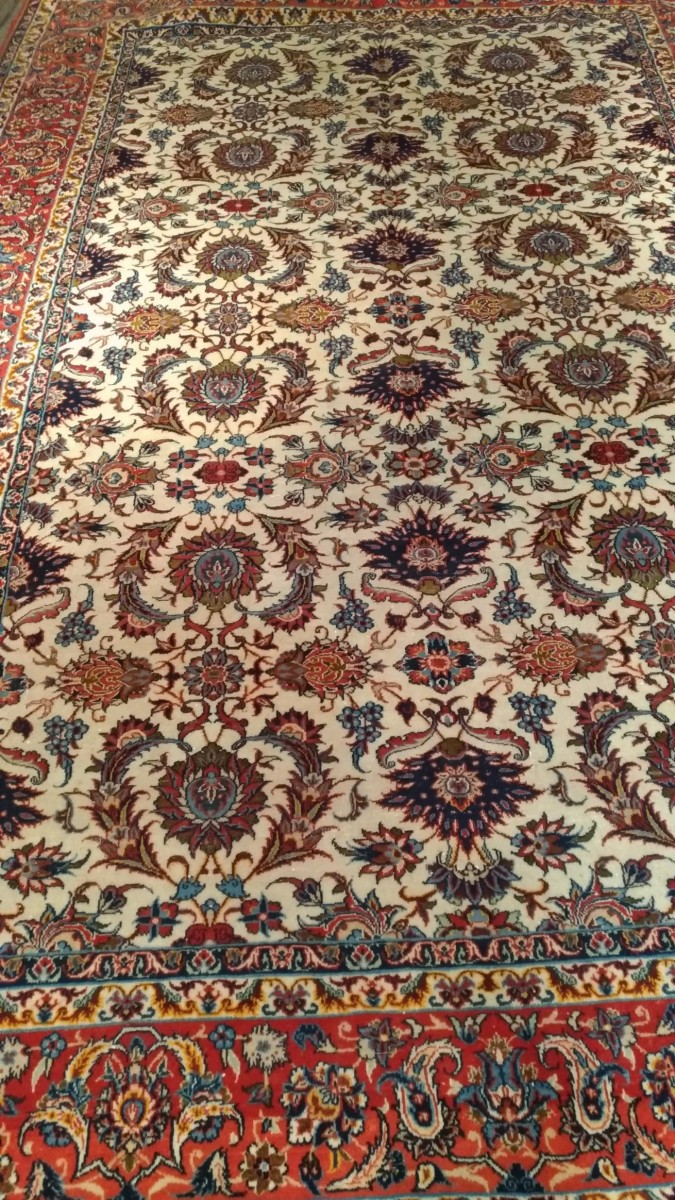This magnificent carpet has undergone a thorough cleaning and meticulous inspection by our experts in our workshop. It is now ready to grace your home.