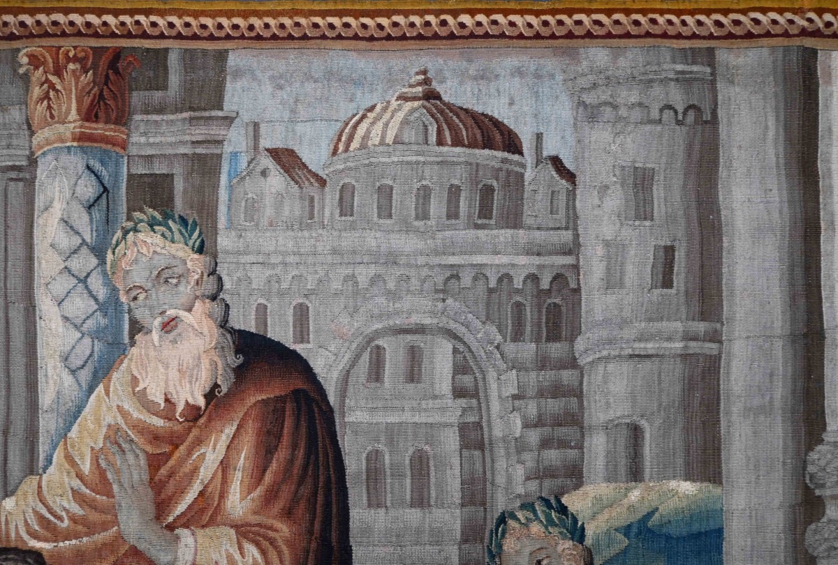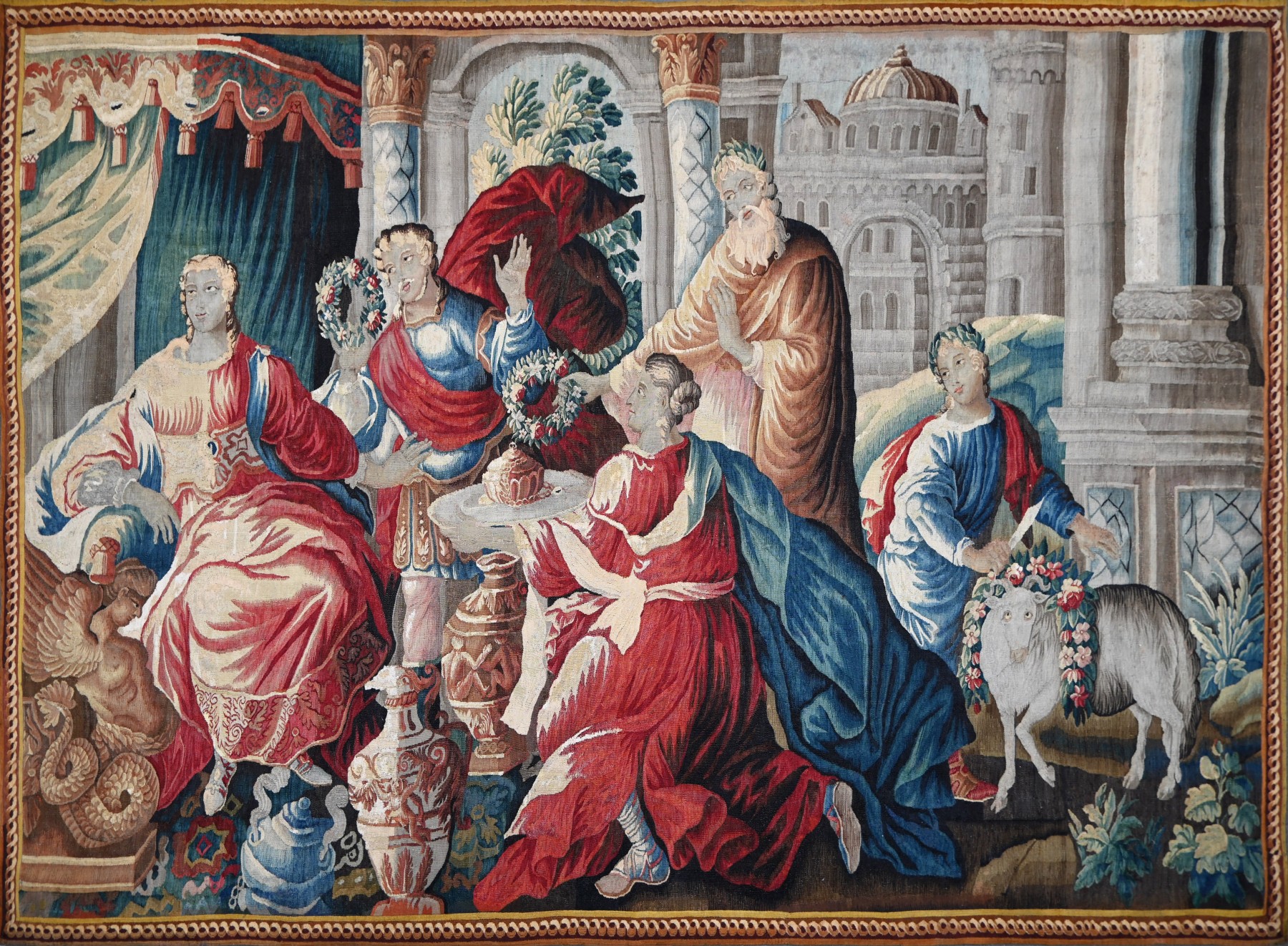 Although unsigned—a common feature of 18th-century Aubusson tapestries—the work fully corresponds to the known designs based on Moillon's cartoon.
