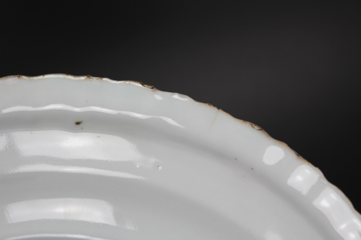 2) chips, shivering and hairline (approx. 1cm) to the rim.