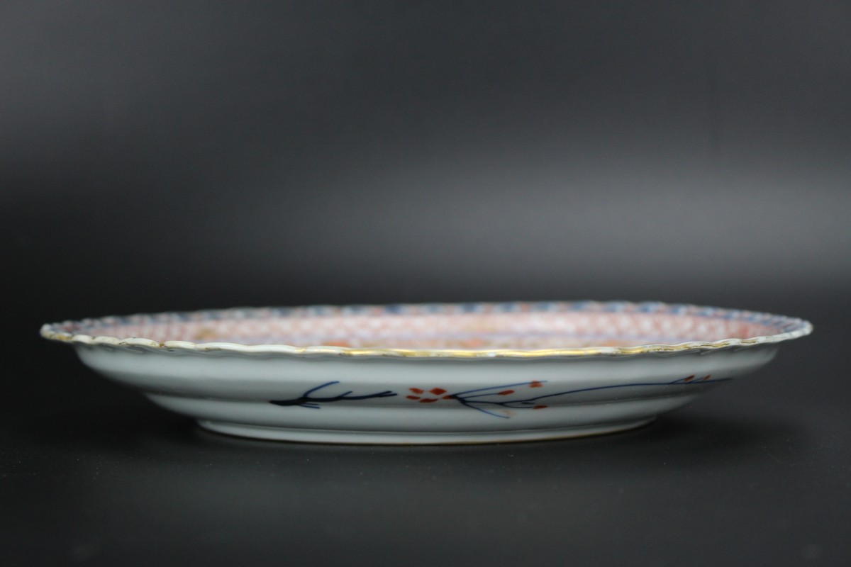A set of five Chinese Imari porcelain dishes, decorated with flowers.