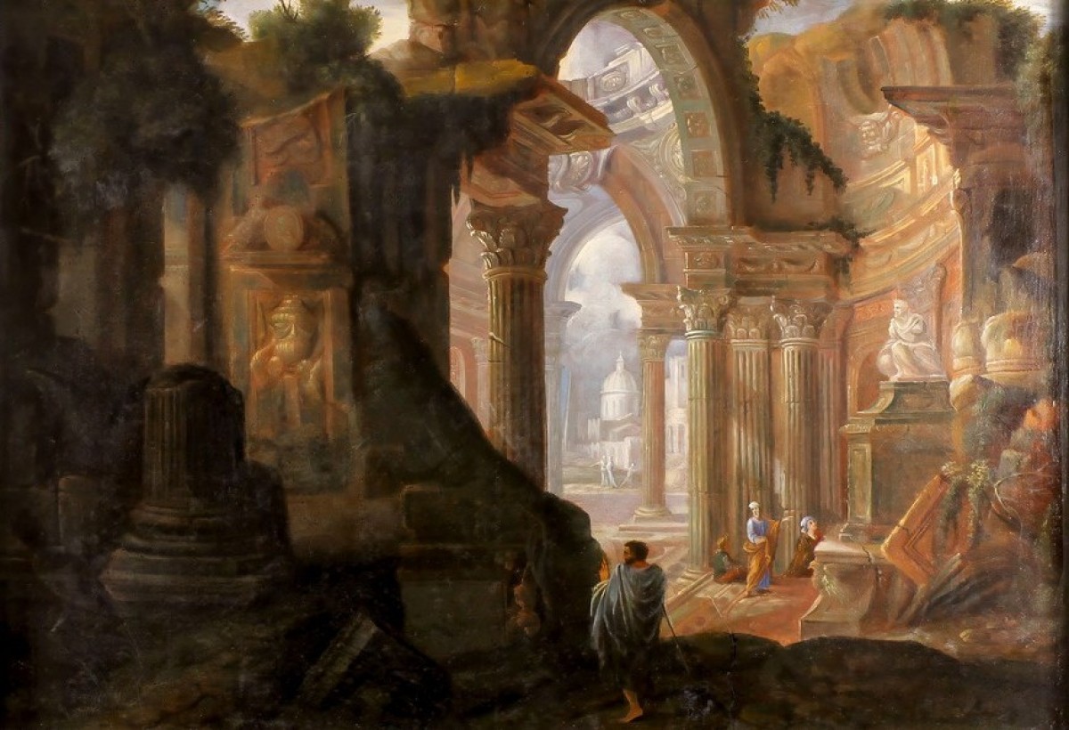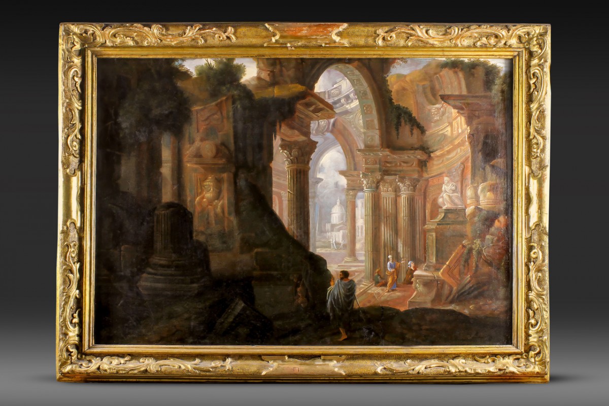 This composition belongs to the tradition of architectural capricci and antique ruins that were highly prized in the 18th century. It was notably during this period, under the reign of Charles of Bourbon, King of Naples, that Herculaneum was rediscovered, followed about a decade later by Pompeii.