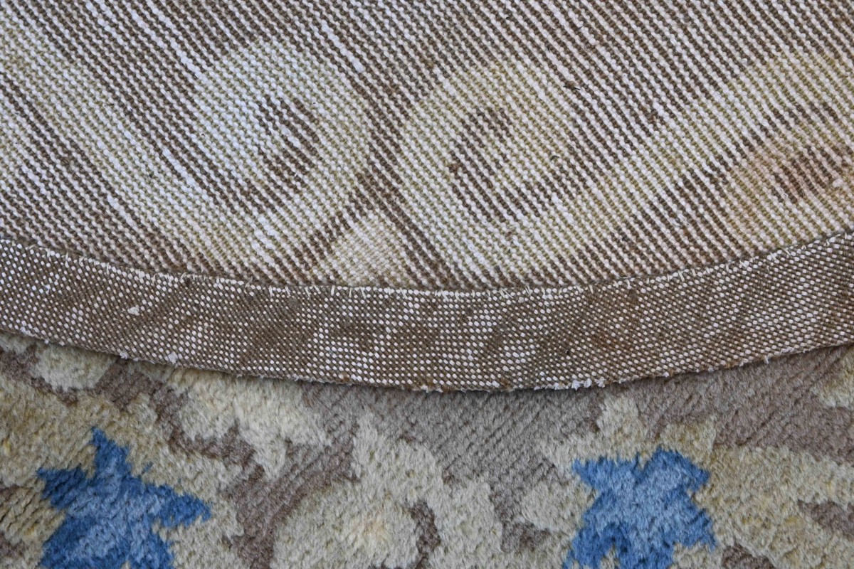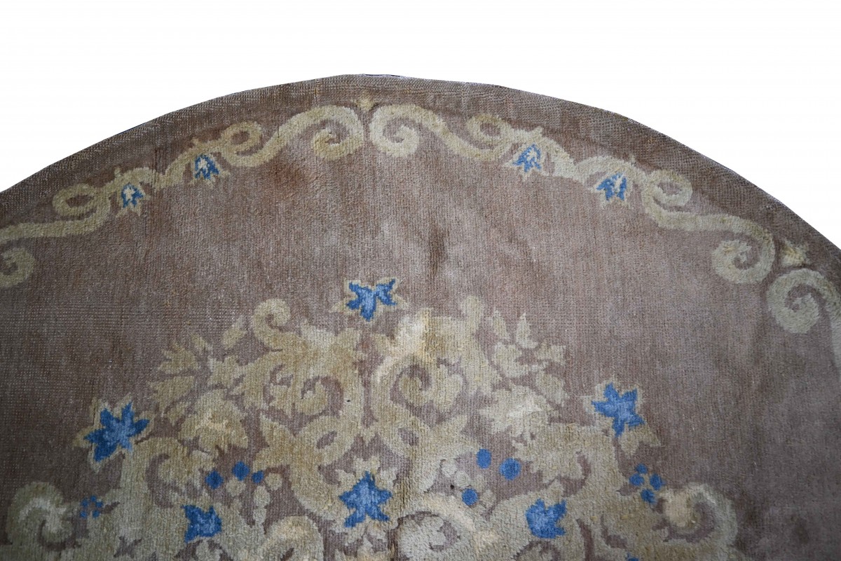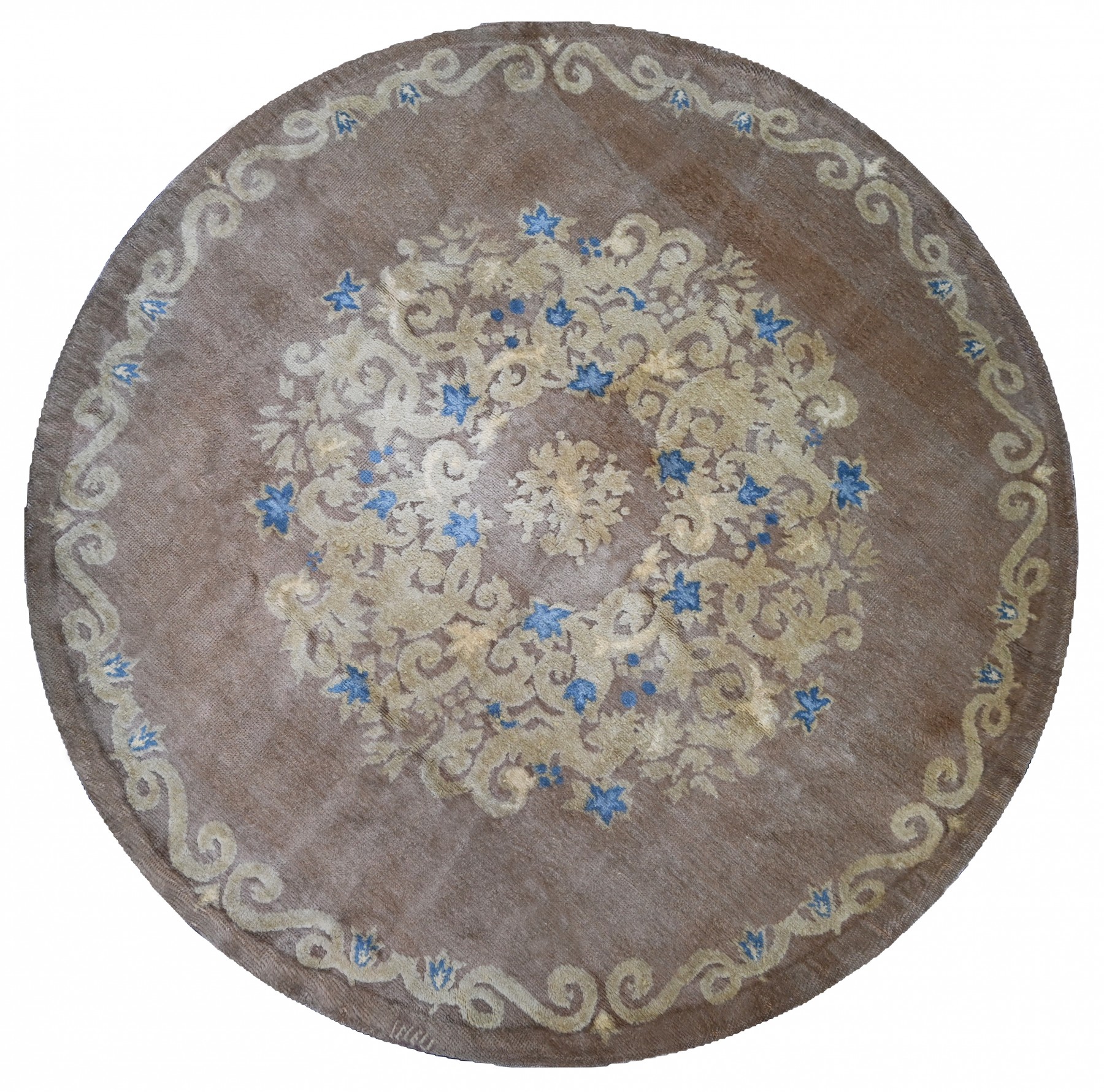Round rug signed Maison Leleu, dating from around 1950, made of high-quality wool. A true illustration of the elegance of late French Art Deco, it reflects the refinement and craftsmanship of Maison Leleu. Designed under the artistic direction of Paule Leleu, this rug combines subtle geometric patterns with clean lines, creating a harmonious interplay of shapes and colors that structures and enhances the space. Its iconic circular shape brings dynamism and modernity to any interior, while retaining the sophistication characteristic of Leleu creations. Perfect for enhancing a living room, hallway, or office, this rug is both a decorative work of art and a collector's item, reflecting the art of living and refined taste of the 1950s.