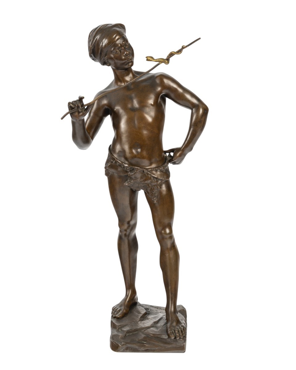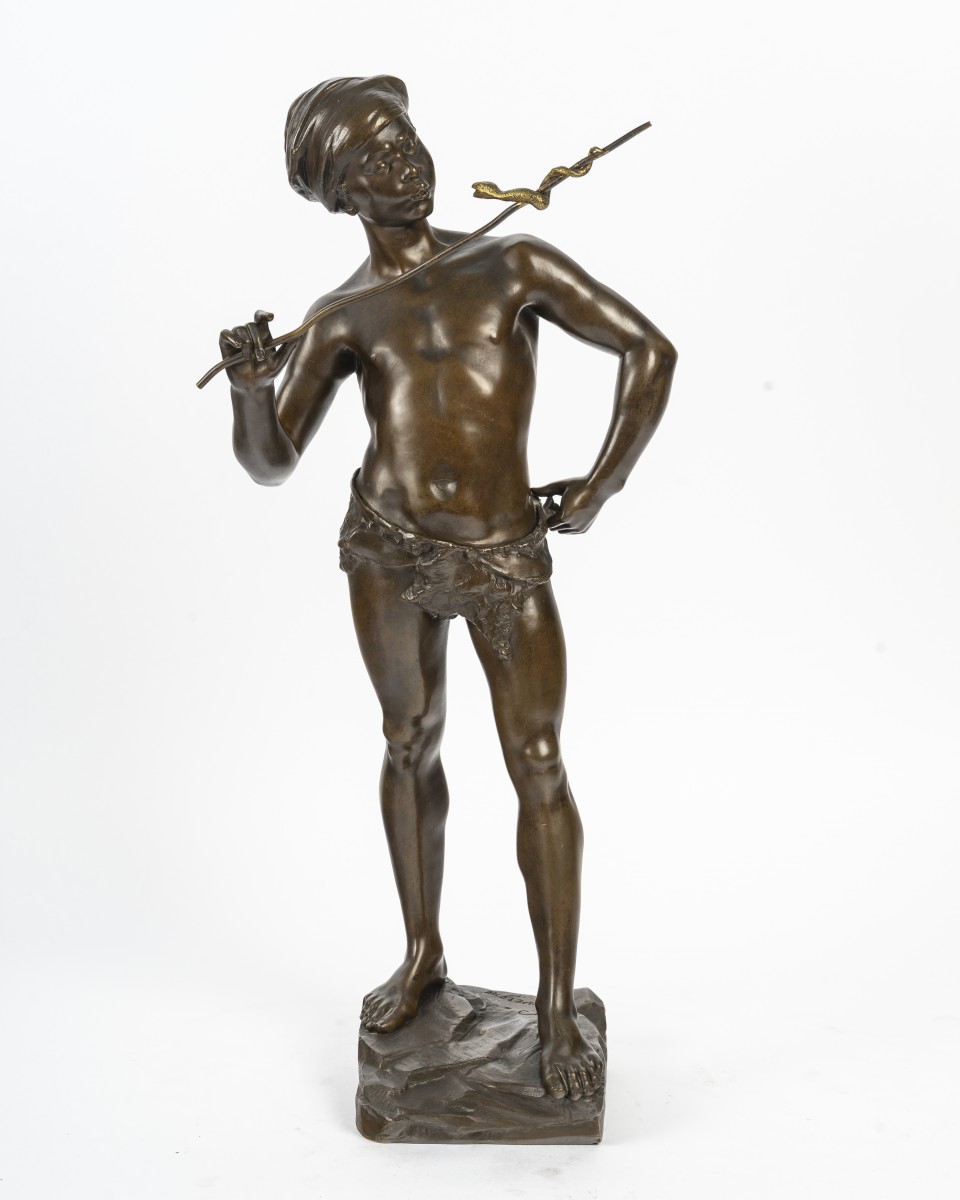 With its elegance, its controlled exoticism, and its strong decorative presence, The Snake Charmer is a particularly attractive piece for a refined interior or a collection dedicated to French sculpture of the Belle Époque.