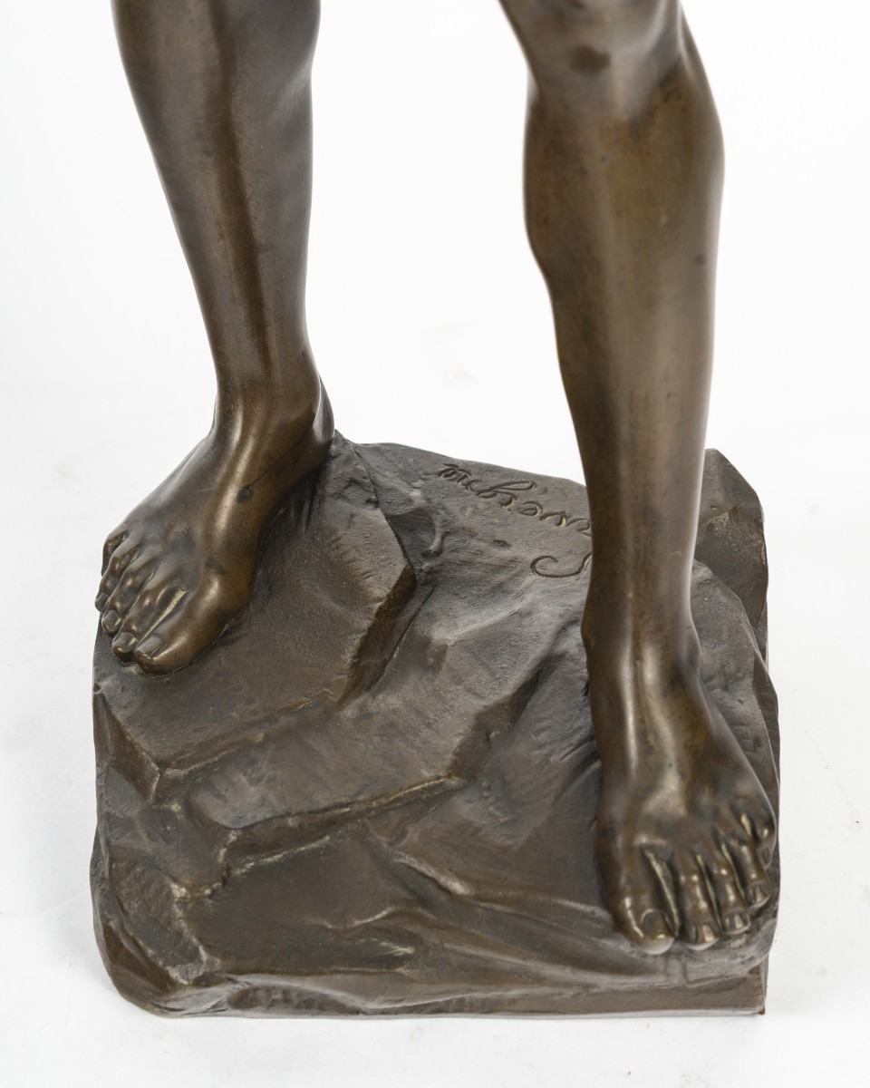 Adolphe Jean Lavergne (1863–1928) was a French sculptor representative of the great figurative tradition of the late 19th and early 20th centuries. Born in 1863, he trained within the French academic system and became a student of the sculptor Jouffroy, a direct heir to the classical teaching of the École des Beaux-Arts. This rigorous training profoundly influenced his work, resulting in a masterful command of modeling and a particular attention to the expressiveness of the figures.