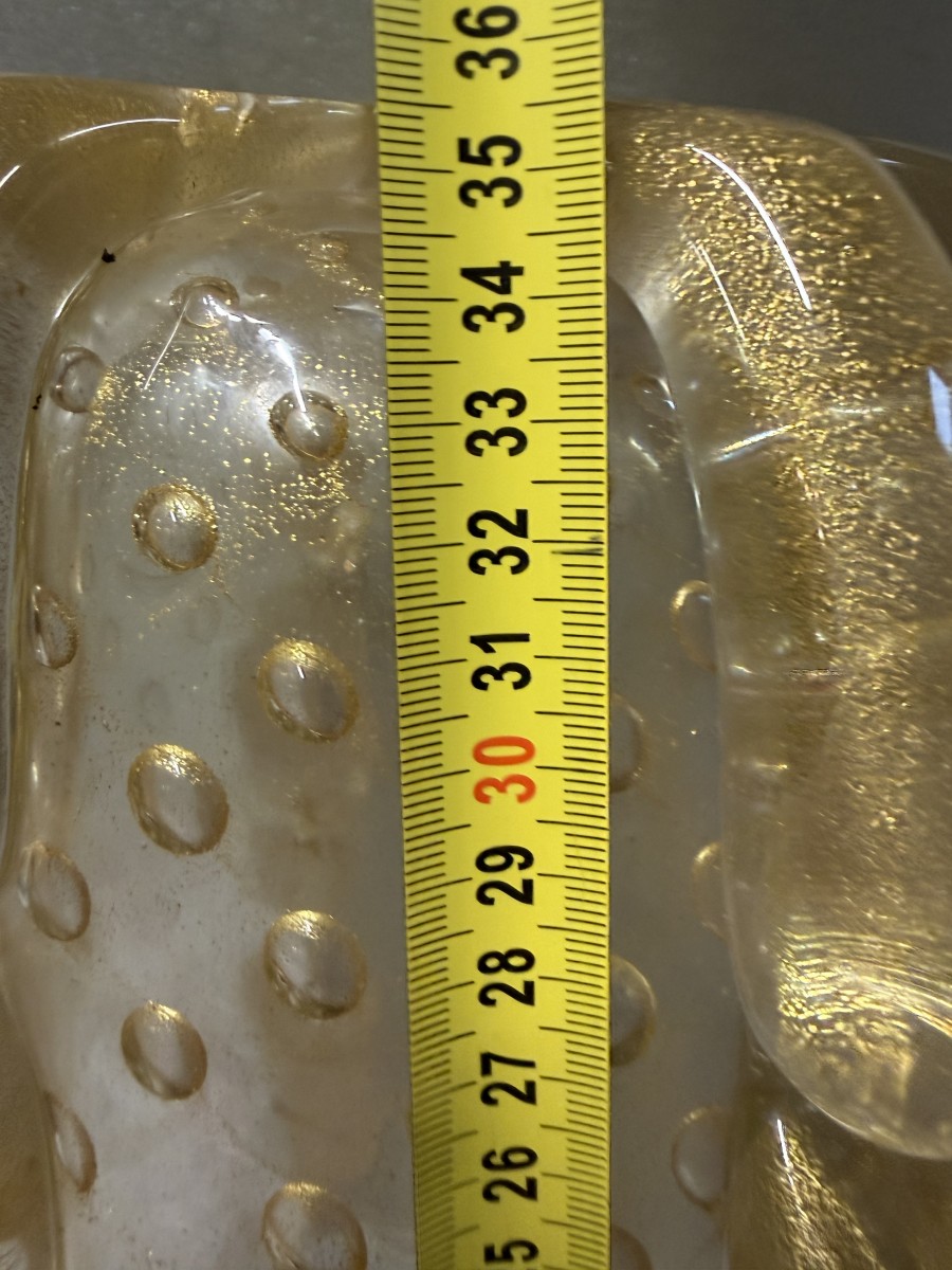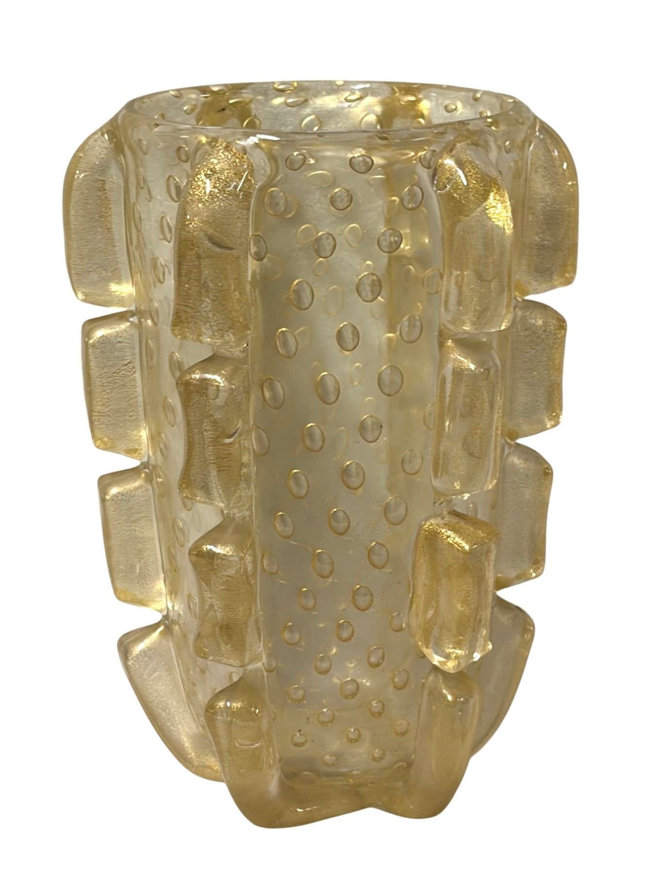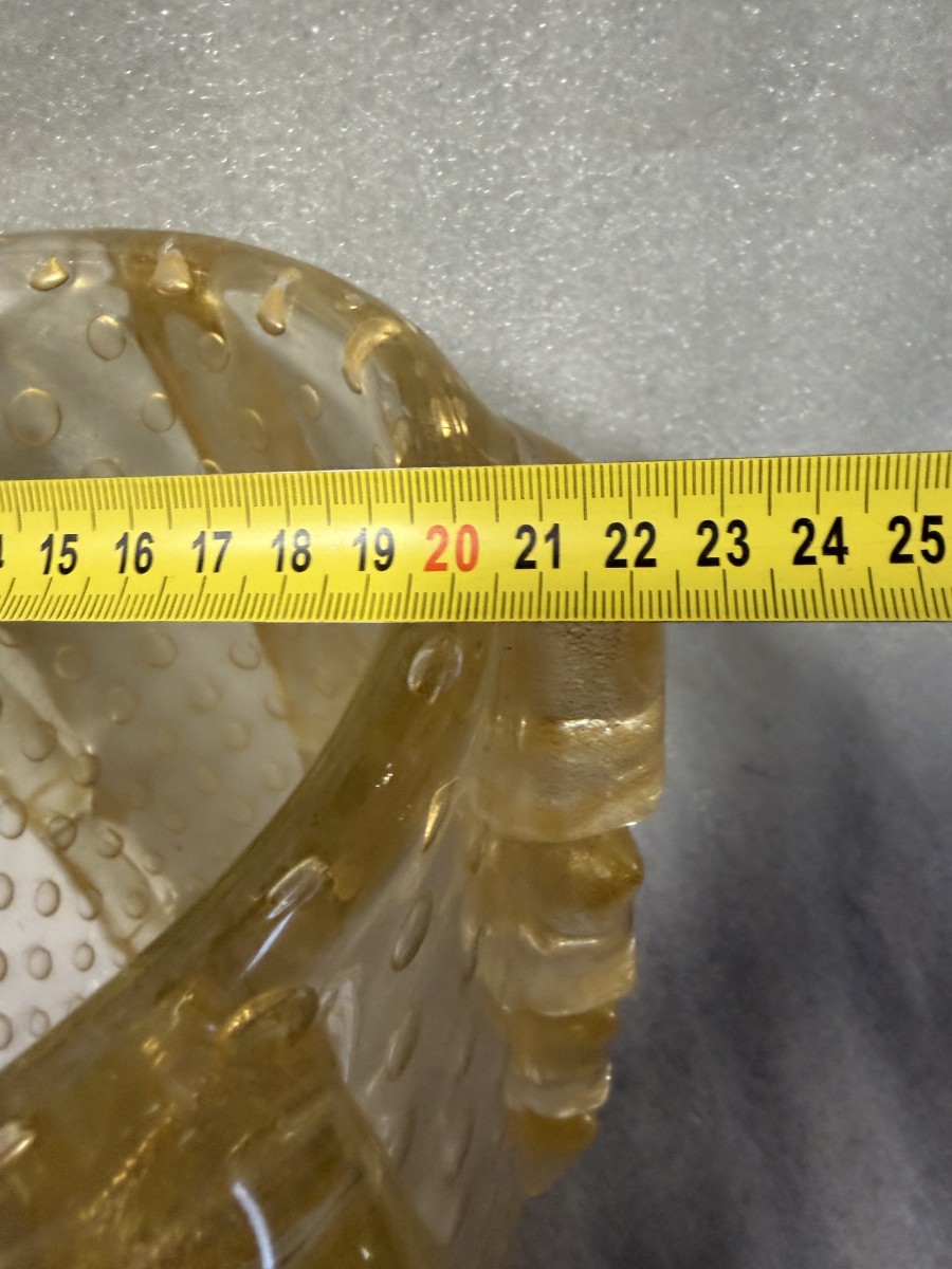 Murano vase with bubbles and gold inclusions, good condition, crystal and gold, Circa 1970 Diameter: 26 cm Height: 36 cm Good condition Signed Barovier i Toso Murano
