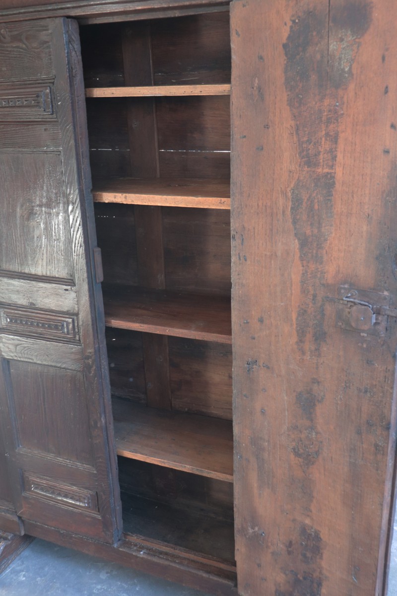 Small Cabinet - cabinet, Spain, 17th century Small chestnut wood cabinet with two doors and internal shelves. (The shelves can be removed as they are screwed in place) Ideal for small spaces given its size. Dimensions: Maximum depth 38cm, height 174cm, width 118cm