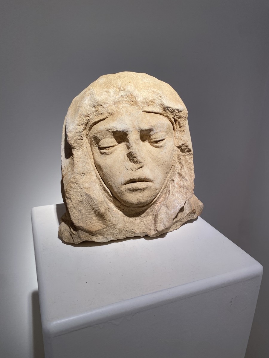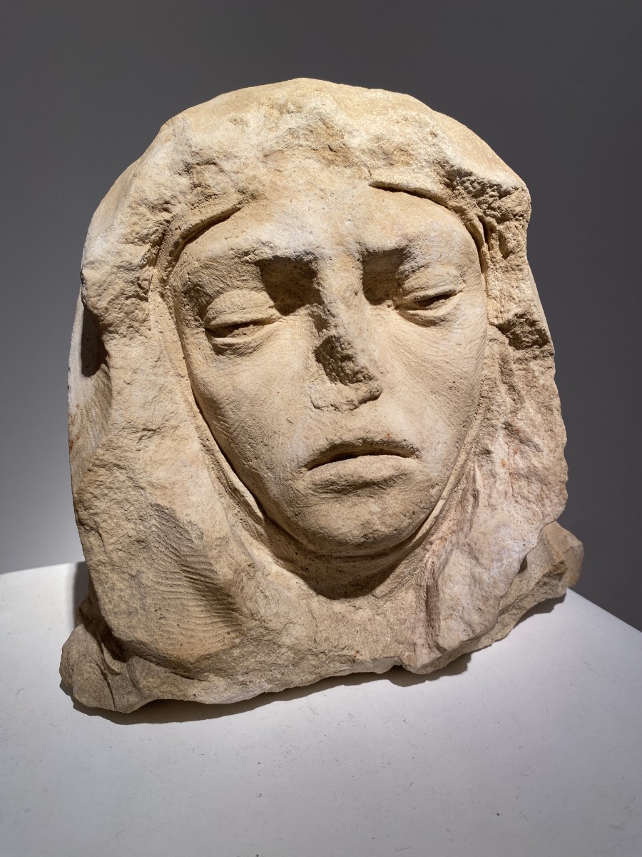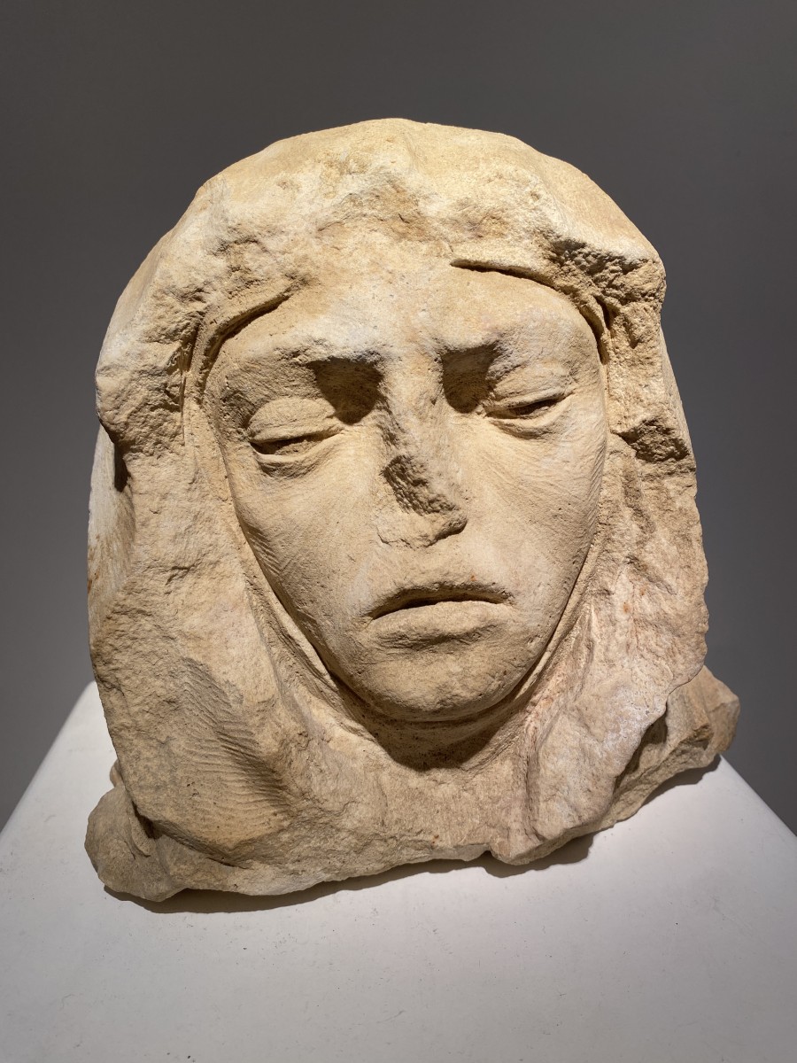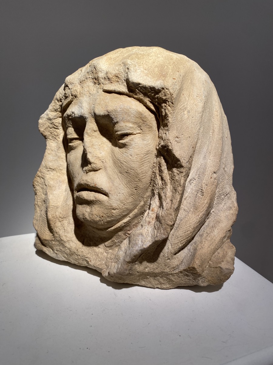 The physiognomy of Jacqueline de Laignes, who donated the Sepulchre of Chaource with her husband, also shares common features with our face: the same oval shape contained within a wimple, the same sad yet restrained expression.