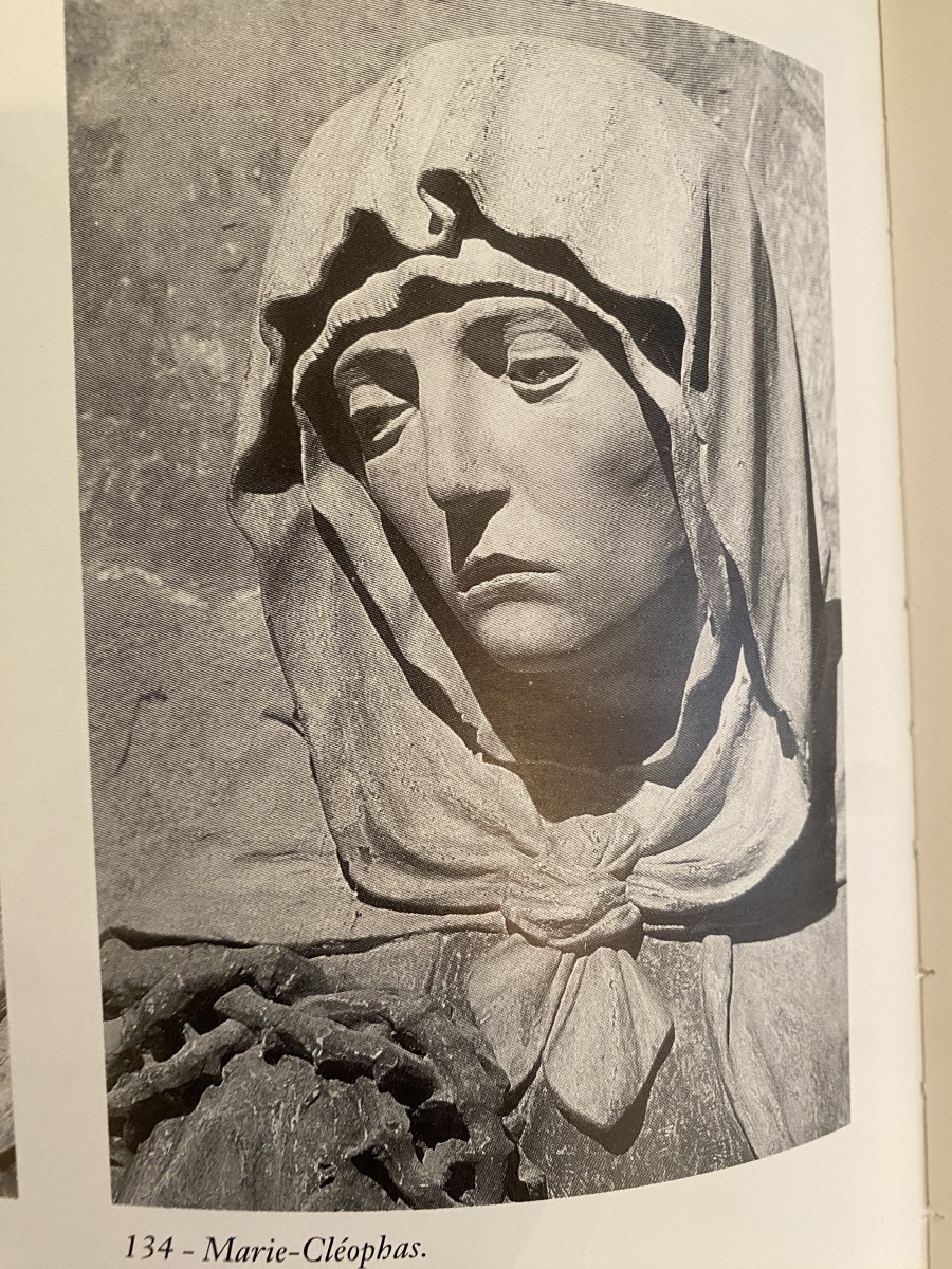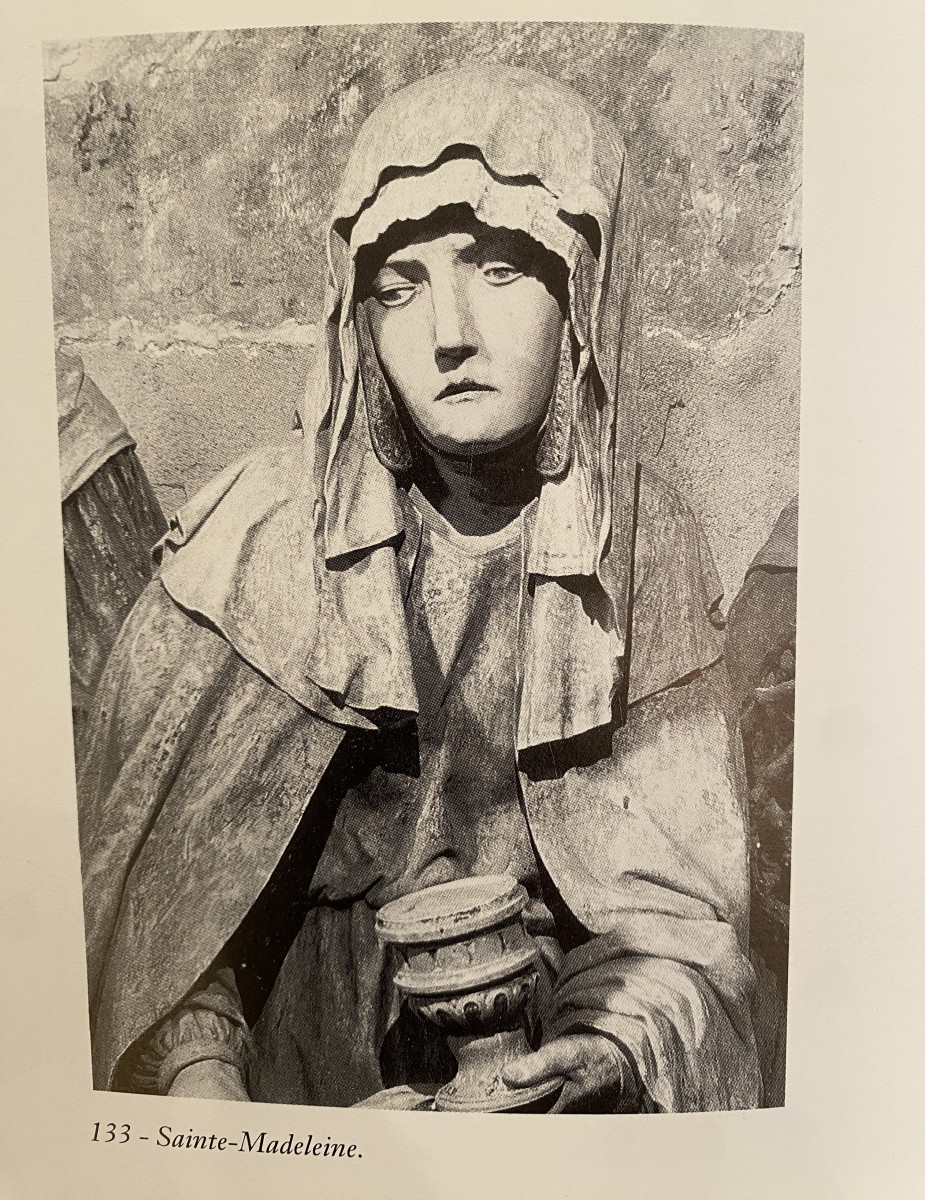 Notable examples include the Virgin of Mercy in Bayel (1510), the Sepulchre in Chaource (1515) and the Deposition of Christ in Villeneuve l'Archevêque (1528), where the faces of the holy women bear similarities to the one presented here: fairly flat oval faces with prominent cheekbones, slightly protruding chins, swollen upper eyelids, thin, slightly parted mouths that are more or less curved...