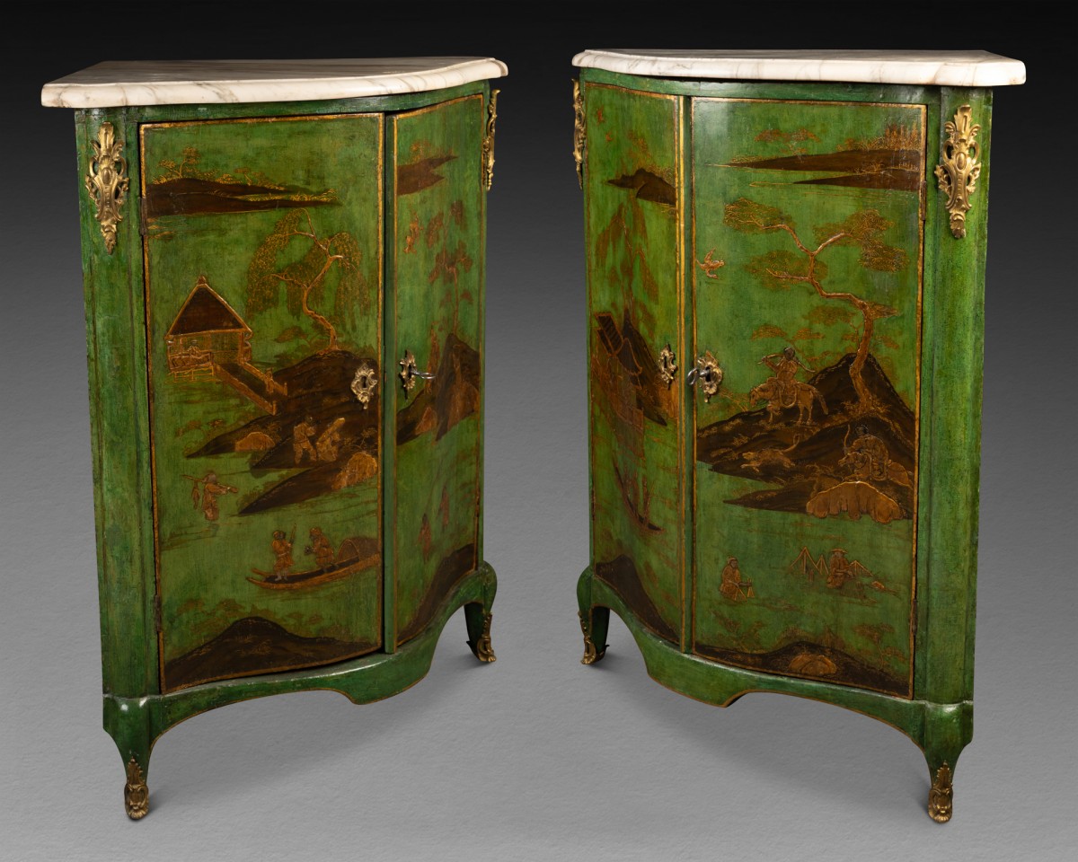 Our corner cabinets are featured on page 585 of the book "Le mobilier français du XVIIIème siècle" by Pierre Kjellberg and on page 57 of the book "Les Secrets de la laque française - Le vernis Martin," the catalog for the 2014 exhibition at the Musée des Arts Décoratifs.