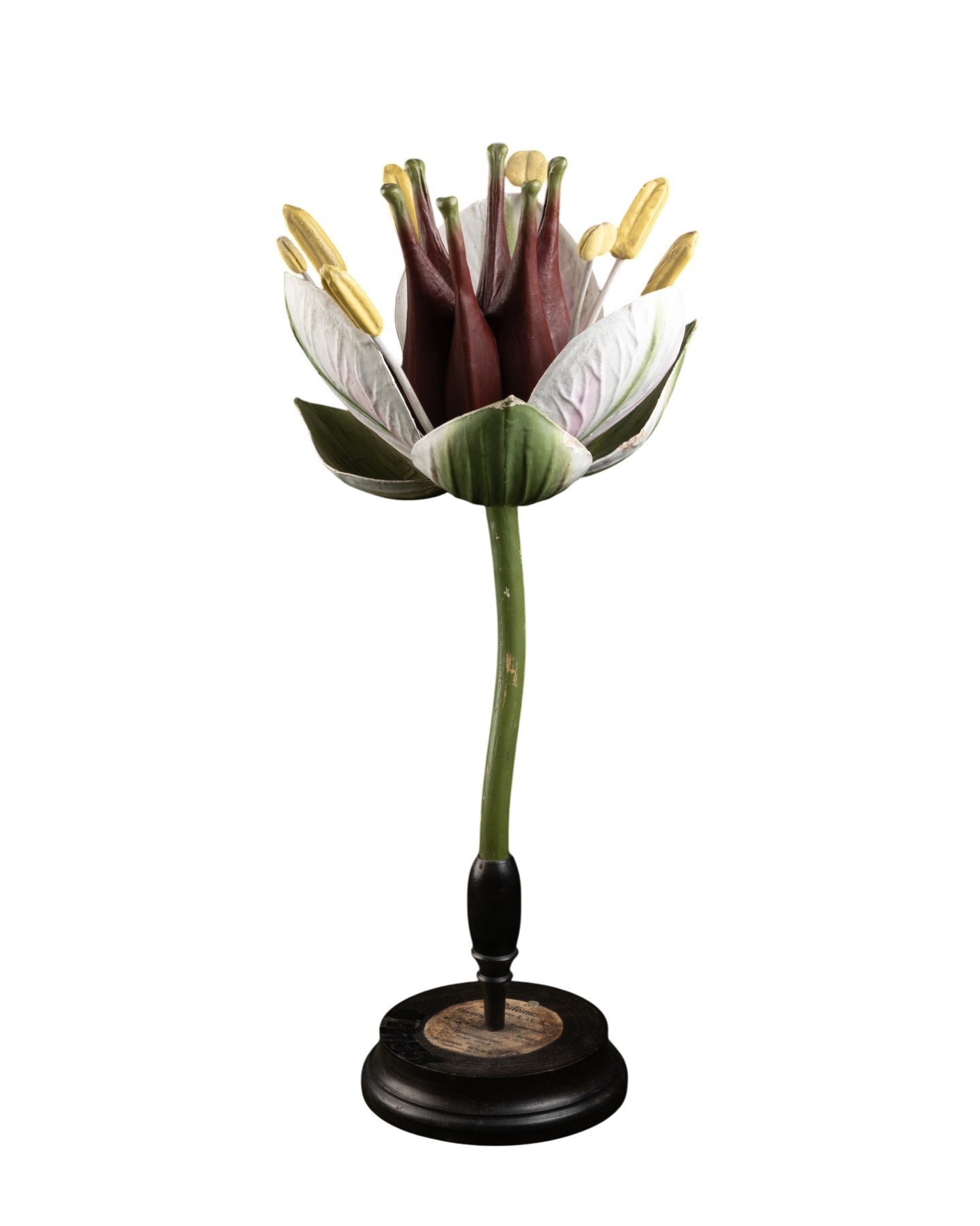 This botanical model, representing a flowering rush (Butomus umbellatus), was designed at the beginning of the 20th century in the workshops of Reinhold Brendel in Grünewald, near Berlin. This small manufactory, originally founded in Breslau in 1866 by Robert Brendel, became renowned as early as the 1870s for the production of so-called "clastic" models. These detachable structures allowed for the study of the internal organization of plants, revealing anatomical and microscopic details invisible to the naked eye on a considerably enlarged scale.