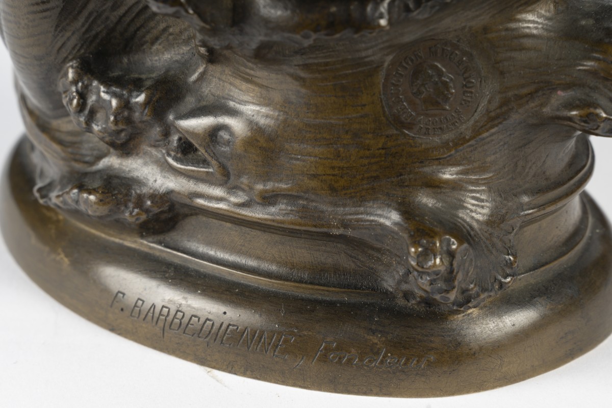 Maison Barbedienne was a famous 19th-century foundry, which quickly achieved great renown for its statues and objets d'art. A bronze workshop, the company nevertheless worked with other craftsmen and associated its name with a wide variety of works, particularly furniture. Present at all the World's Fairs of its time, Maison Barbedienne was regularly recognized with awards, notably at the 1855 World's Fair, where it received the Grand Medal of Honor.