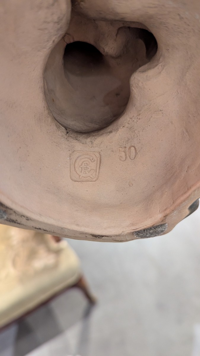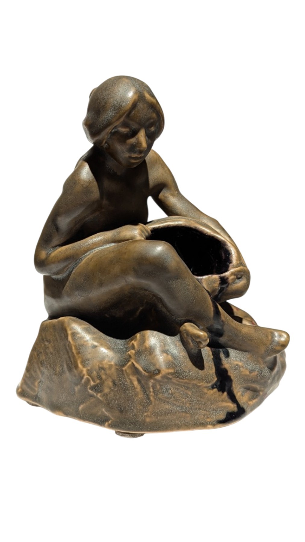 Glazed brown ceramic inkwell, an emblematic work of French Art Nouveau. The composition depicts a nude female figure, captured in a gesture of ecstasy and domination, tearing apart the head of an octopus whose ink spills out to form the very function of the object. The expressive modeling, the fusion of the female body with the animal, and the symbolic and erotic charge of the scene reflect Carabin’s radical vision and his sculptural approach to the decorative arts.