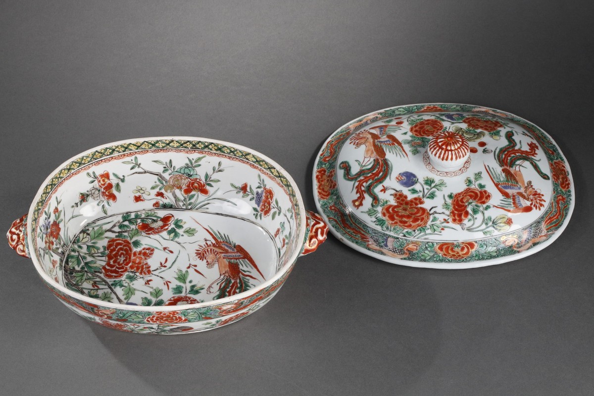 Chinese oval shaped tureen decorated with Phoenix and flowers and decorated inside the tureen Kangxi period