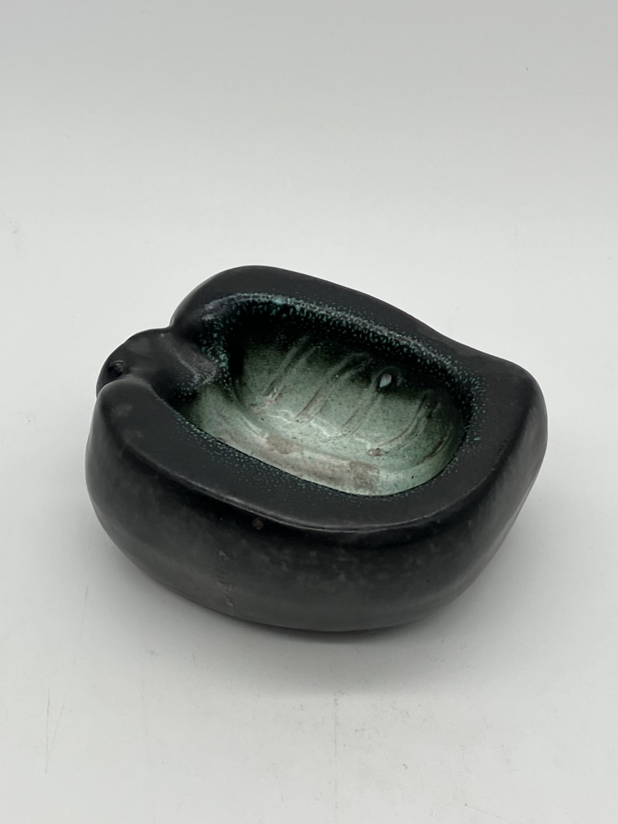 Porcelain & Faience  - Georges Jouve (1910–1964) – Black ceramic leaf ashtray 20th century - Georges Jouve (1910–1964) – Black ceramic leaf ashtray 50 Antiquités - Georges Jouve (1910–1964) – Black ceramic leaf ashtray