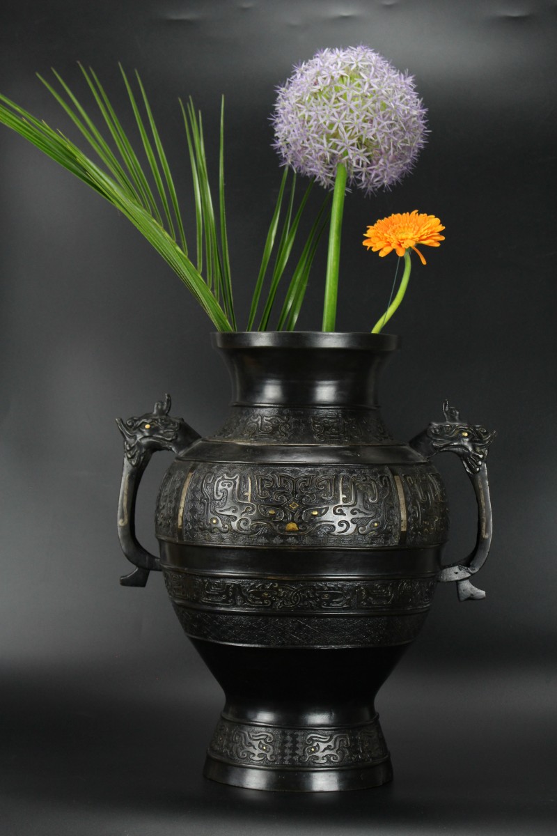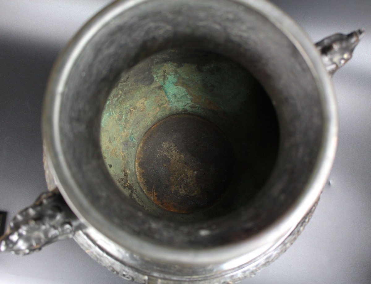 Compare with another bronze Hu vessel in the Clague Collection, number 241, illustrated in China's Renaissance in Bronze: The Robert H. Clague Collection of Later Chinese Bronzes, 1100-1900 (Robert D. Mowry, 1993), p. 194, no. 42.