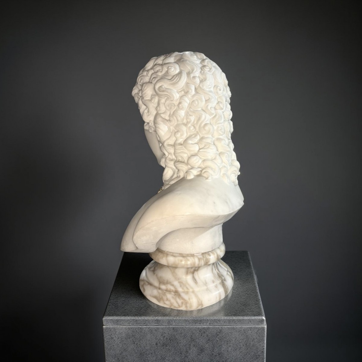 Large marble bust of Eros, known as the Eros of Centocelle, white marble, Roman workshop, second half of the 19th century.