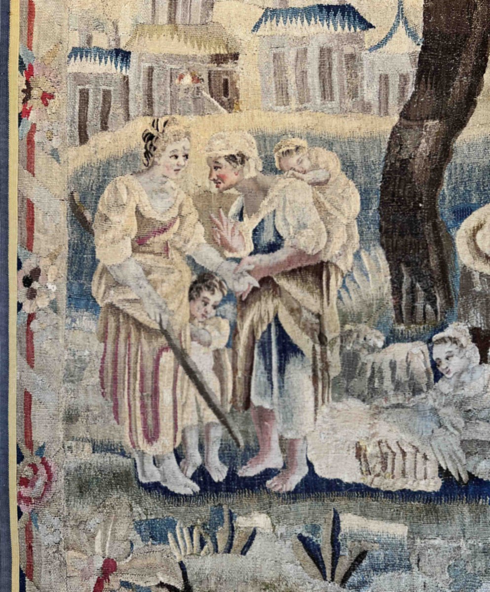 A large-scale decorative work, this tapestry exemplifies the exceptional craftsmanship of the Aubusson workshops and stands as a valuable testament to 18th-century French textile art, highly sought after by collectors and connoisseurs of decorative arts.