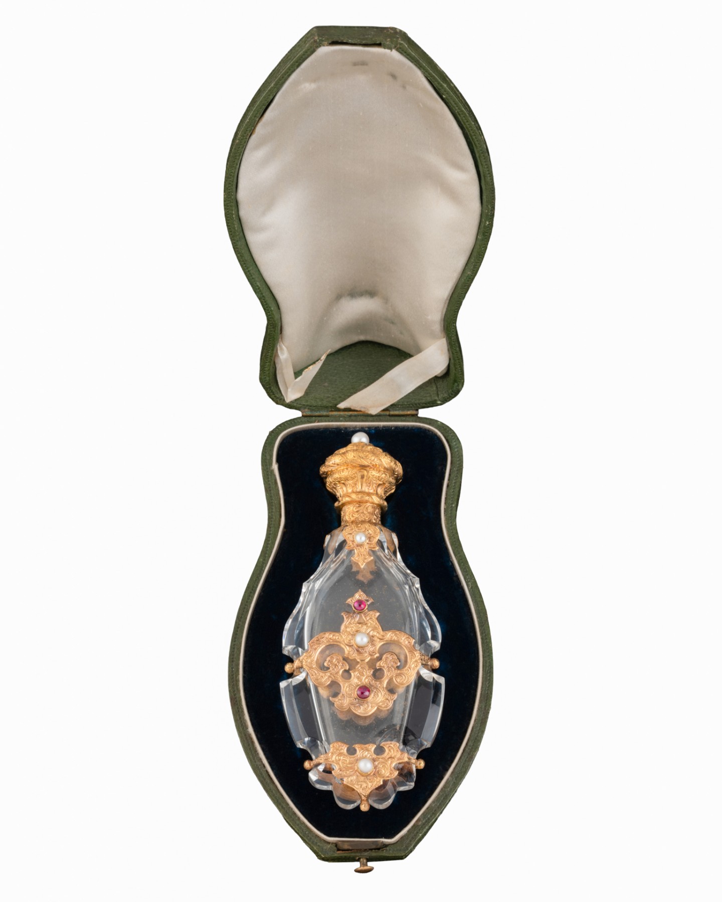 Its hinged stopper opens onto a small gold-mounted stopper.