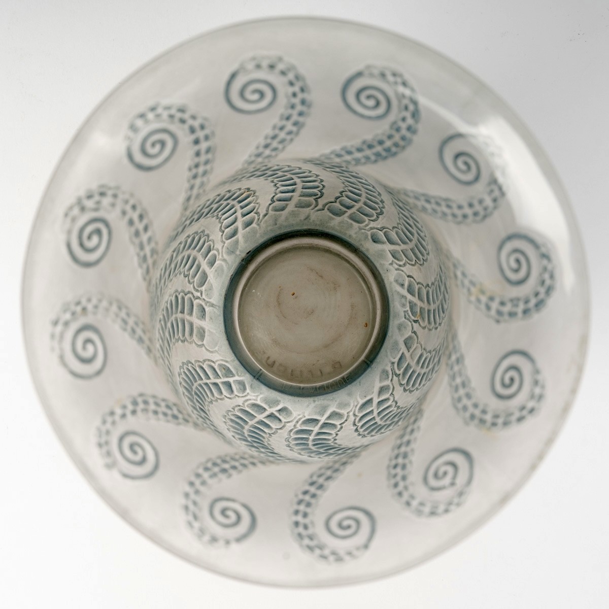 Vase "Meduse" made in frosted glass with blue patina by René Lalique in 1921.