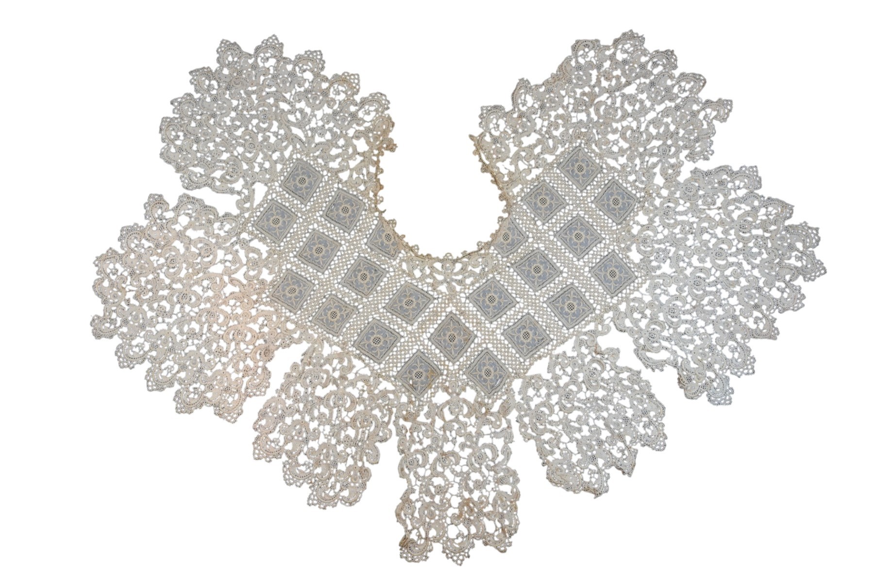 A very rare, complete linen lace collar in excellent condition, with no repairs, additions, or cuts. Tiny losses and tears are visible in the photos.