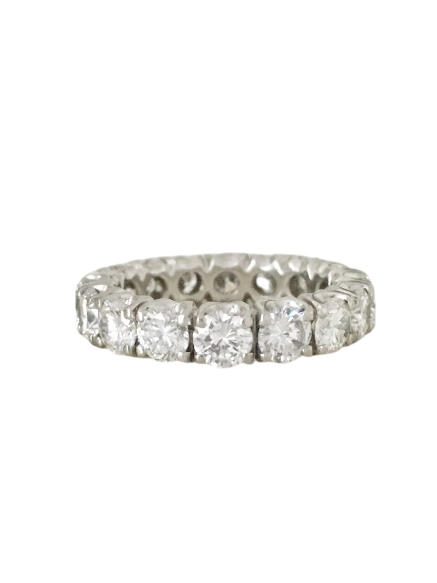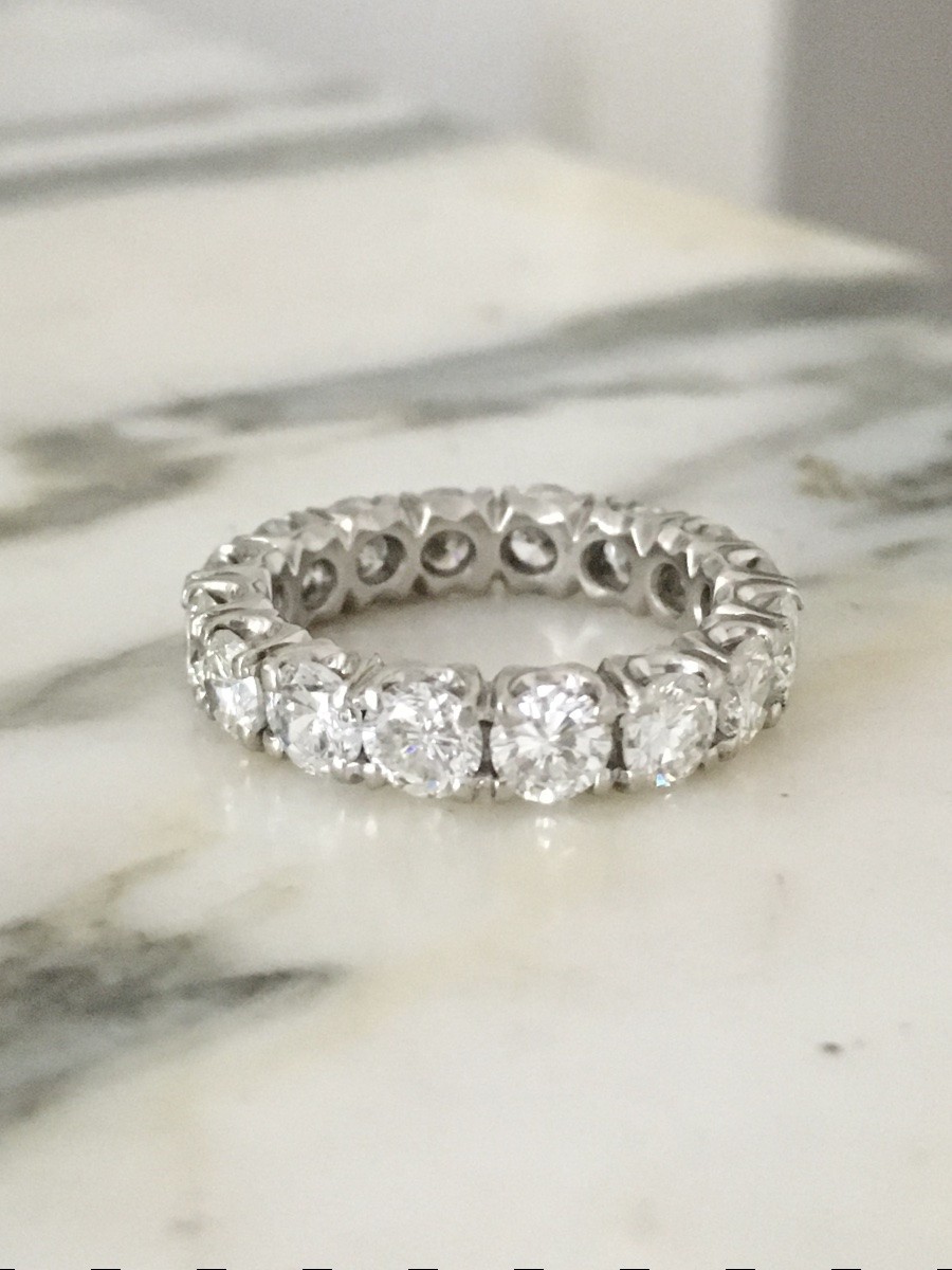 American-style platinum wedding band set with 16 brilliant-cut diamonds totaling approximately 4 carats.