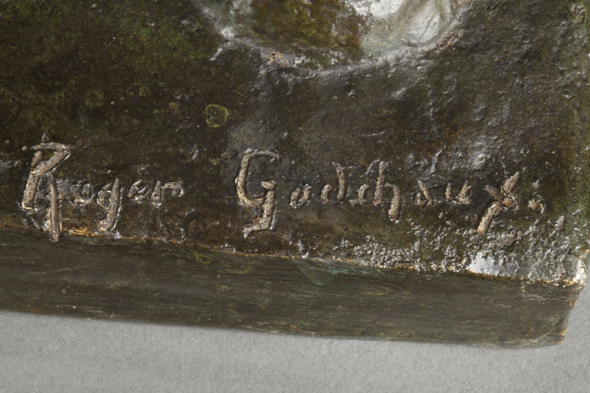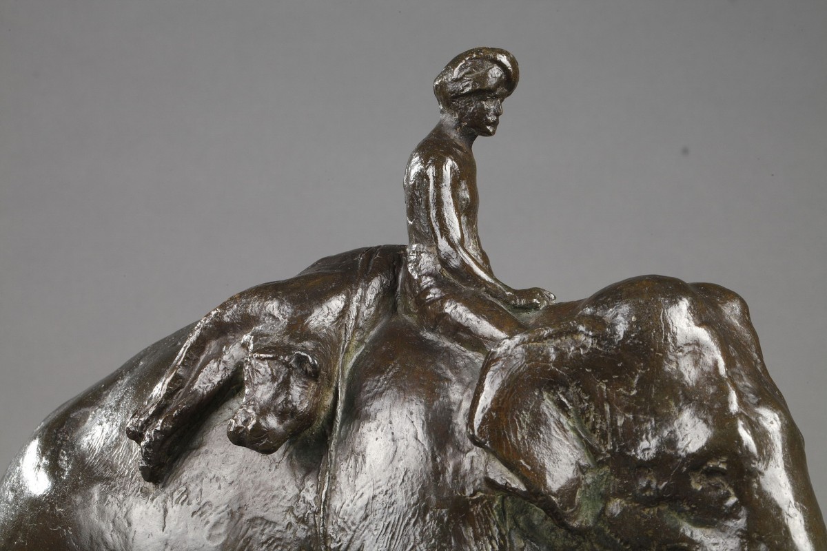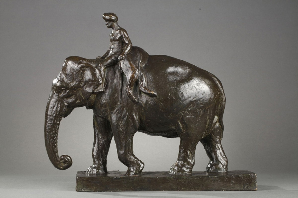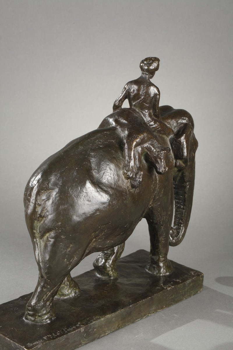 Roger Godchaux (1878-1958) was a French painter, drawer and animal sculptor. If all domestic and wild bestiary was part of his artistic universe, wild beasts and elephants having been his favorite subjects. As a figurative sculptor, he represented the animal without artifice, in his attitudes of everyday life. From Vendôme Godchaux joined Paris, where he prepared in 1894 admission to the School of Fine Arts. He soon turned to animal art. He became a pupil of Jules Adler and Jean-Léon Gérôme. In 1896 he was a pupil of the Julian Academy. As a great admirer of Antoine-Louis Barye, he created a collection of works produced in the master's studio. In 1905, he began to exhibit in Paris. He regularly participated in the Salon of the French Artists. After the war, he resumed exhibitions at the Salon des artistes français where, in 1922, he won the bronze medal. The French state ordered him two bronze plates for the Library of the Army Museum. In 1925, the jury of the International Exhibition of Modern Decorative and Industrial Arts awarded him a silver medal. In 1927, Roger Godchaux won the contest of car manufacturer Chenard and Walcker for the creation of an emblem for their cars. In February 1928, the French State bought him a bronze sculpture: "Elephant", exhibited at the National Salon of animal artists, of which he became the treasurer. It was at this time that the Newark Museum in the United States bought him sculptures. It was also in 1928 that he won the silver medal at the Salon des artistes français. In 1929, the State bought him once again a sculpture (Pigeon).