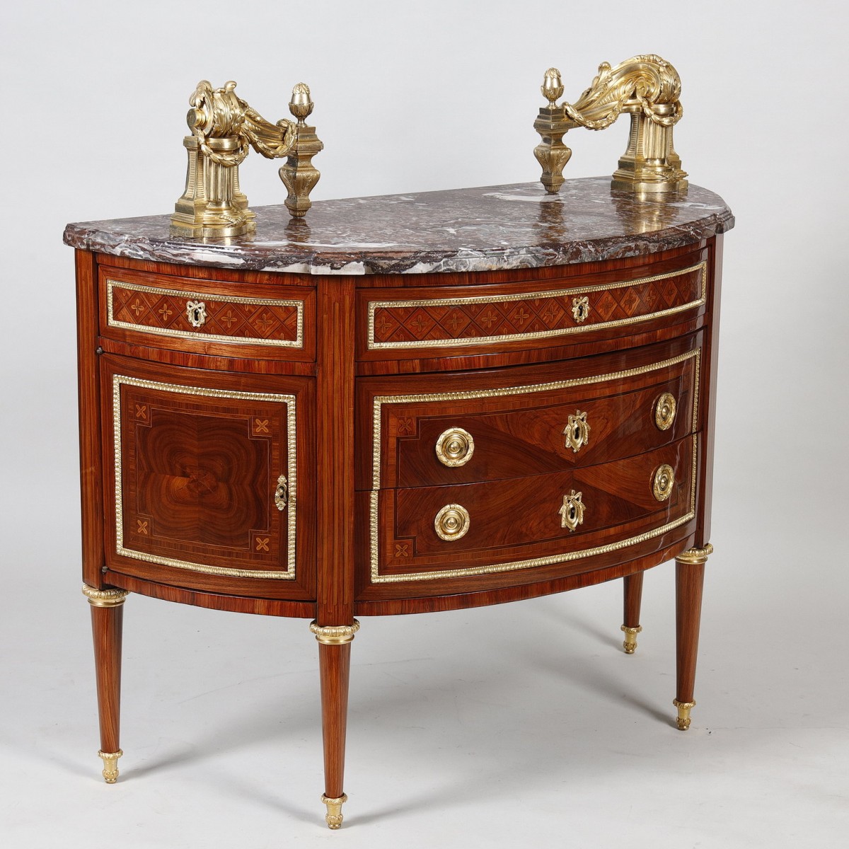 Pair of Louis XVI period "half-moon" shaped commodes, stamped Fidelys Schey - Furniture Style Louis XVI Pair of Louis XVI period "half-moon" shaped commodes, stamped Fidelys Schey - Pair of Louis XVI period "half-moon" shaped commodes, stamped Fidelys Schey - Louis XVI Antiquités - Pair of Louis XVI period "half-moon" shaped commodes, stamped Fidelys Schey