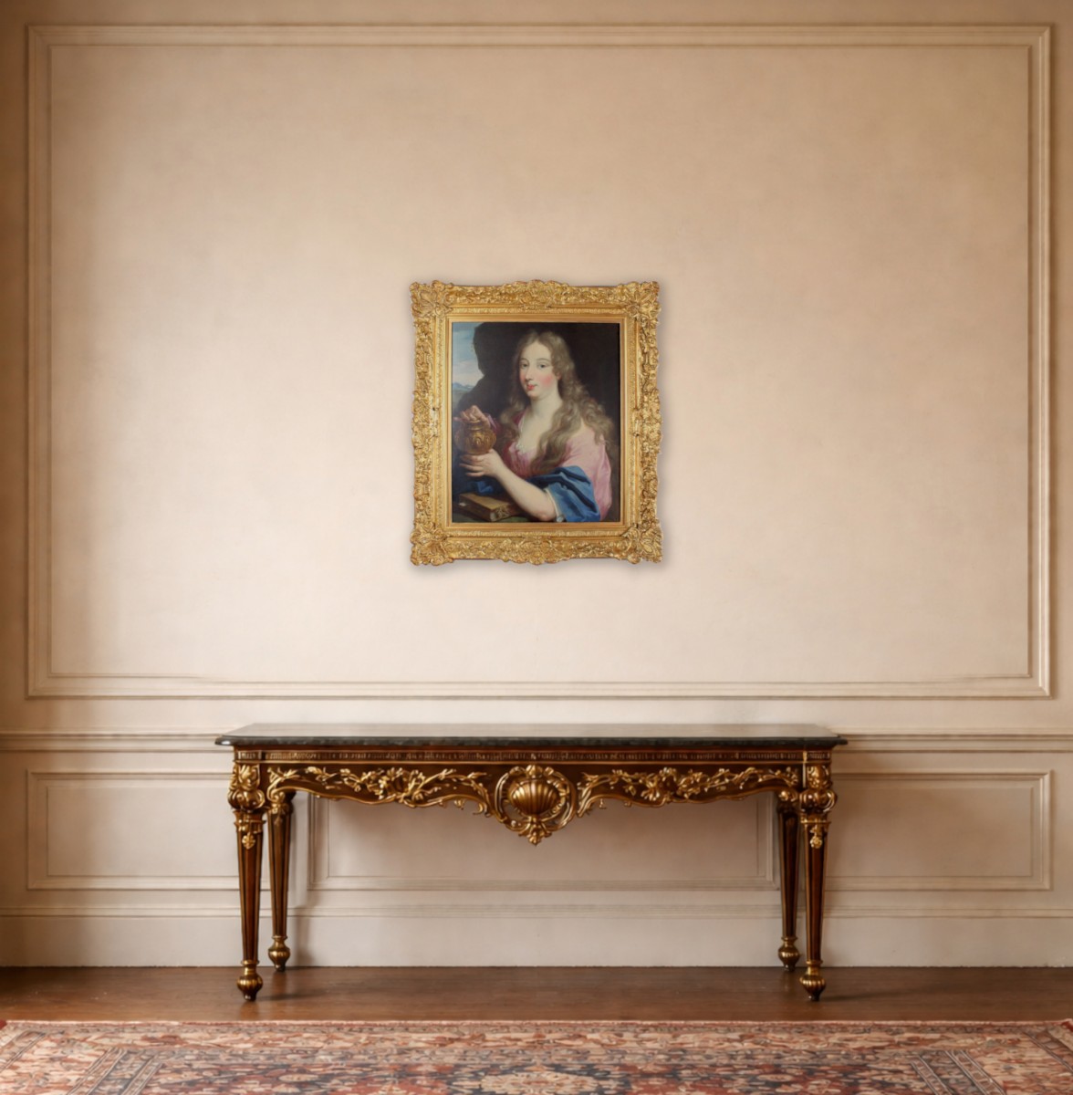 This leads to the conclusion that the present portrait was executed by a French artist active in the late seventeenth century, who took as his inspiration Nocret’s Madame de Ludres, but was likely commissioned to paint this portrait for another French aristocratic lady, who wished to be portrayed as the Magdalene.